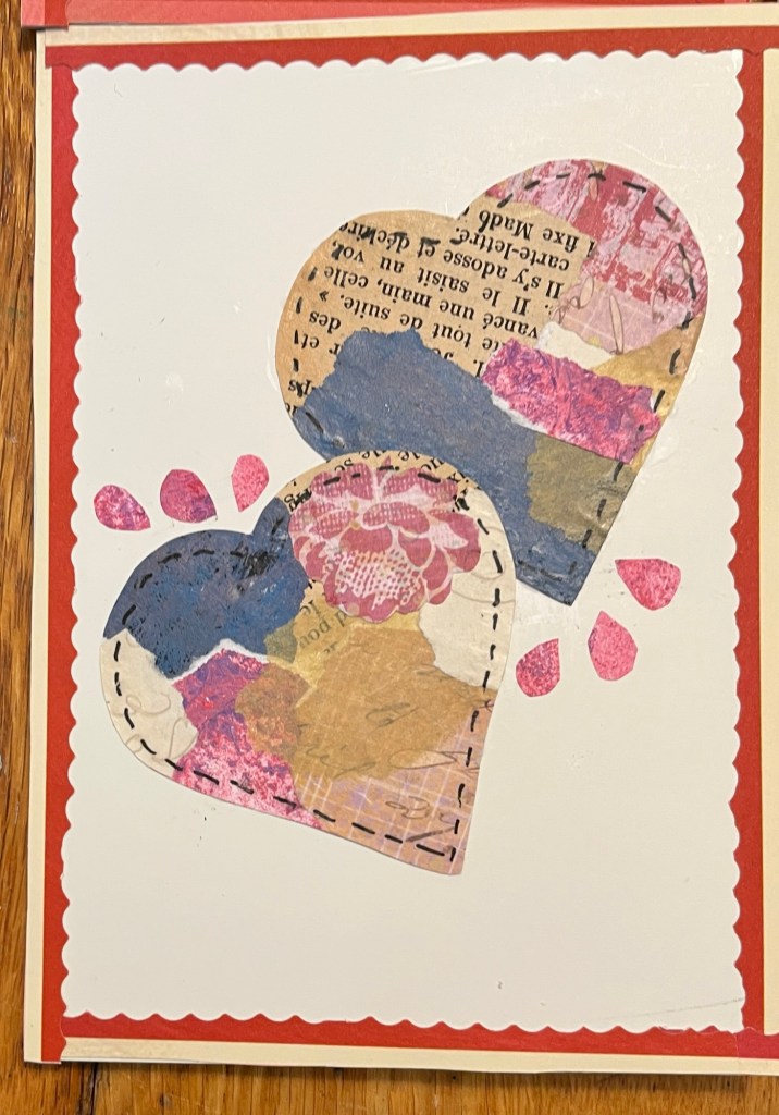 This was my style… torn paper collages that I trimmed into shape. Pretty, thematic, and easy enough to do while chatting.
