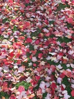 There were looming clouds but also bright sunshine. We fed the kitties, then walked back, taking pictures of leaves, roses, and rainbows and chatting with a lady jump roping on the sidewalk. We had stopped in Lone Fir Cemetery to collect some more chestnuts when the looming clouds moved right over us.