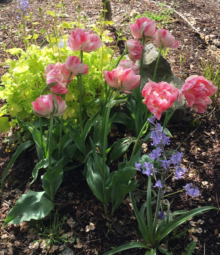 Well, I am back in Portland for the week. It is spring, damp, alternately cloudy and sunny, and blooming. Amazingly blooming. The tulips are at their peak, the camellias are almost spent, and the poppy buds are ready to explode.