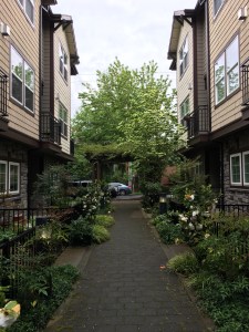 Even the walkway in our condominium complex is blooming. The main archway has wisteria growing in it, and there are leaves and tiny buds already. I expect it to be in full bloom when I return.