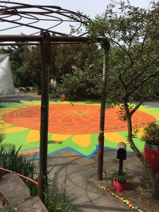 We ended up at 33rd and Yamhill, where the Portland Street Art Association has just finished re-painting a giant flower in what is called the Sunnyside Piazza, a nicely decorated intersection. How nice that people get together to make the city more beautiful, and pull all the neighbors in to help! And, even nicer, the beauty is allowed to remain.