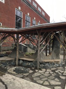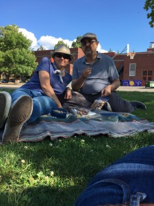 We picked our “table”, a flat spot under a sycamore tree, and spread out the blanket. The tickets are free to this human theater. While we ate we watched dads play catch with kids, teenagers shoot hoops, girls giggle on the steps, and toddlers chase pigeons.