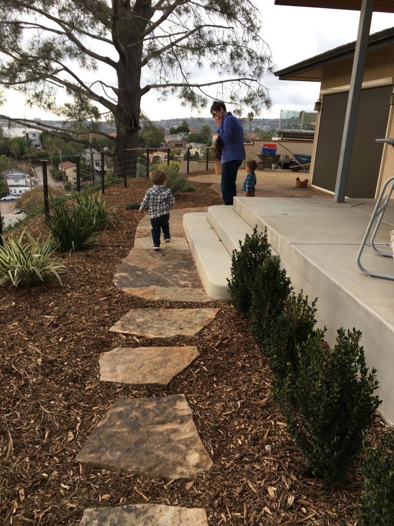 Michael, whose house we were at, has done wonderful work in his back yard. The yard faces a steep ravine, so we had always been a little nervous having the small people out there. But this year, with the kids being a bit bigger and a new set of paving stones and a nice fence, it was much less nerve-wracking. Auntie Bridgett was a very good kid watcher.