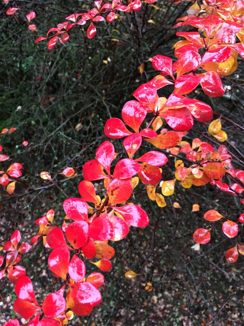 Moss turns every surface into a garden. I imagine myself one inch tall, climbing over the soft, green hillocks on my way to lunch on the fat pyracantha berries. Puddles become lakes. Mossy walls become the cliffs of Moher.