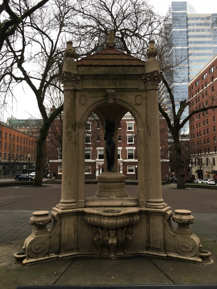 Sometimes, in a busy, crowded downtown, I walk past something many times before I actually stop to appreciate it. The Shemanski Fountain is one of these things. It sits at the north end of the South Park Blocks, and I pass it every time I walk from the Oregon Historical Society to the bus stop. Yesterday, I finally gave it some time.