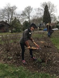 Yesterday I went for a walk to see Auntie Katie and drop of Valentine’s presents and cards to the cousins. On the way, I saw two people working in one of the rose gardens in Ladd’s Addition, and I stopped to ask questions.