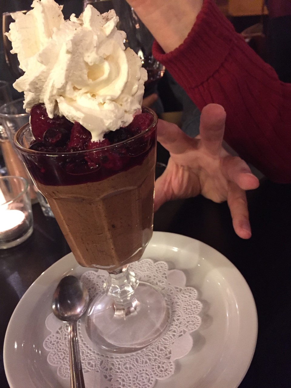 Then we walked (miraculously, there was a break in the rain) to Chez Machin, a tiny French restaurant and creperie down on Hawthorne. It seats about 25 and offers sweet and savory crepes, boeuf bourguingnon, and luscious desserts like mousse au chocolate. The service was fun and quick, the food and wine yummy, and the bill, very reasonable.
