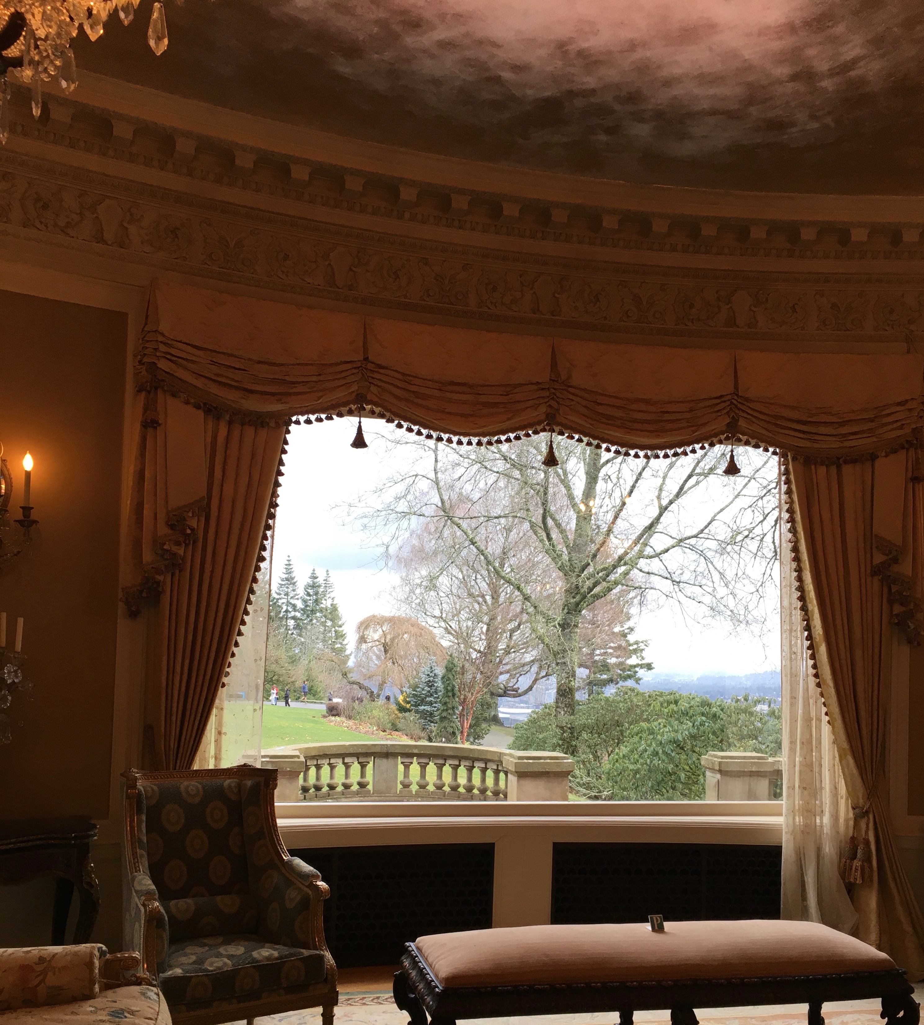 Once we were inside the Pittock Mansion, we were able to walk around with a map and look at the public and private rooms. They were all furnished with proper period furniture, but few of the actual Pittock family things, due to roof leaks and water damage. The furniture we saw was mostly donated by wealthy Portland families anxious to play a part in this celebration of history.