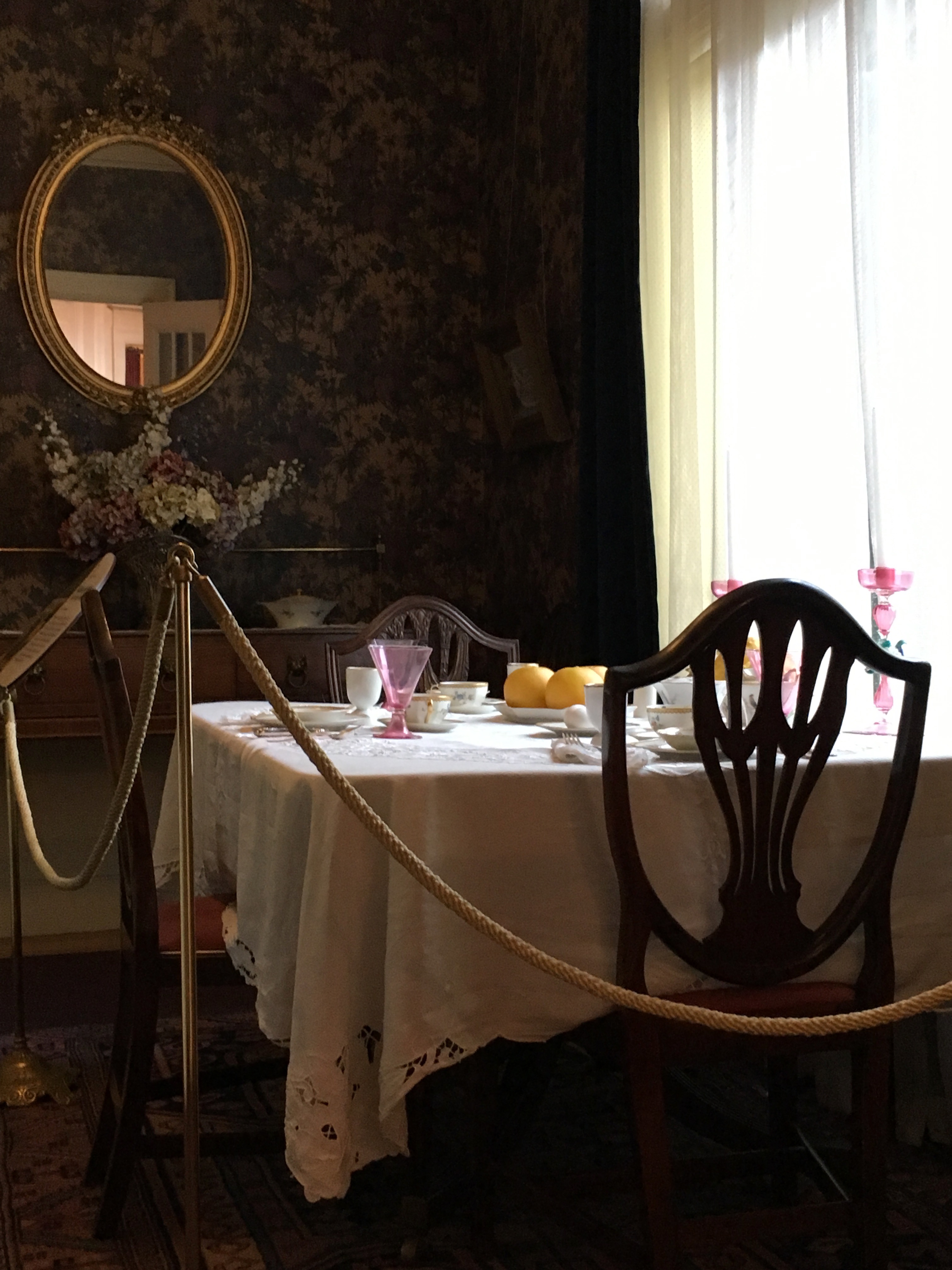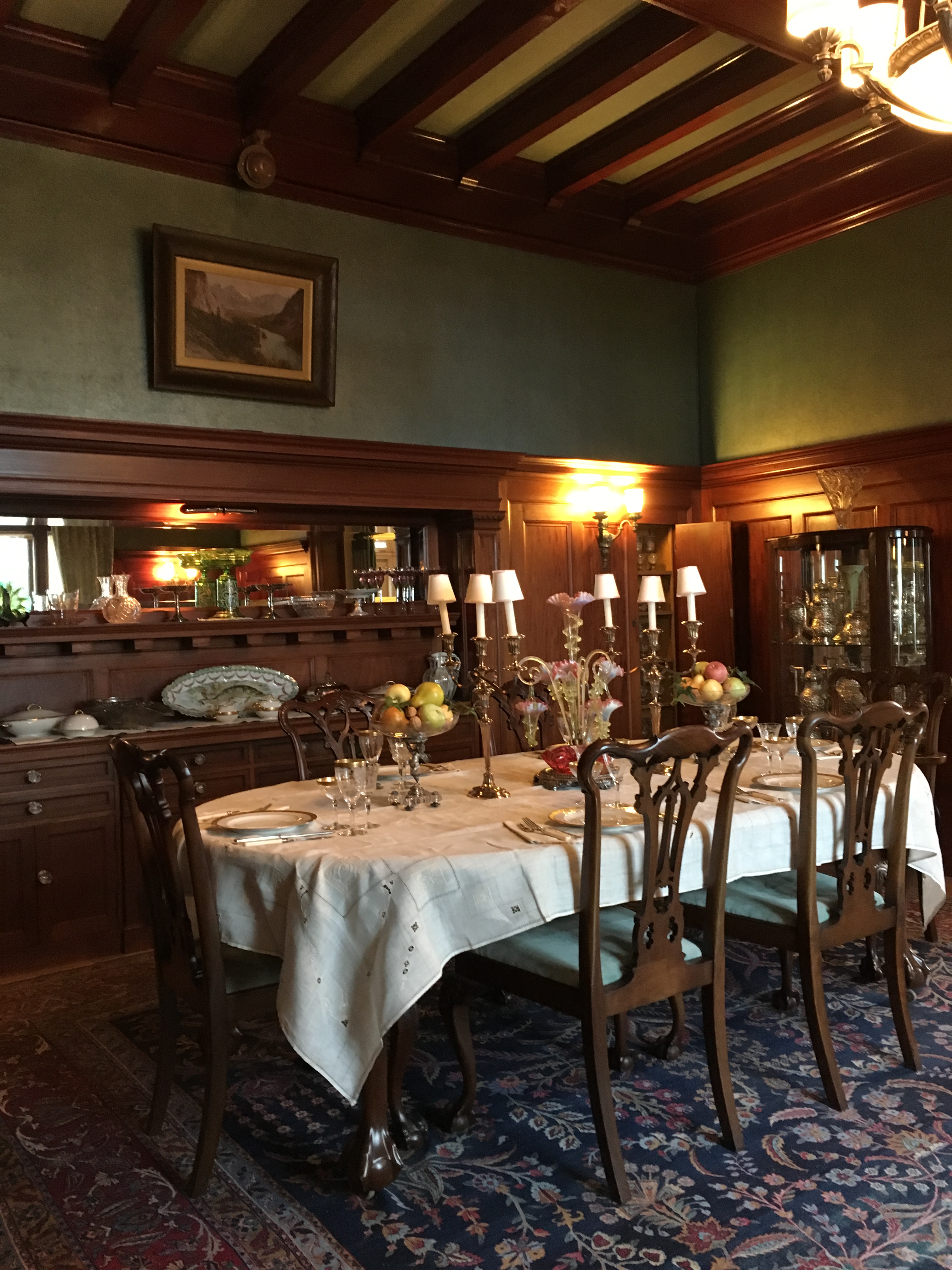 In the Music Room stood a grand piano and harp, with comfy furniture and magnificent views of the garden and city beyond. I can imagine the Pittock daughters playing for friends and family here. The Library was nearby, which seemed to be used for family card games as well as study.