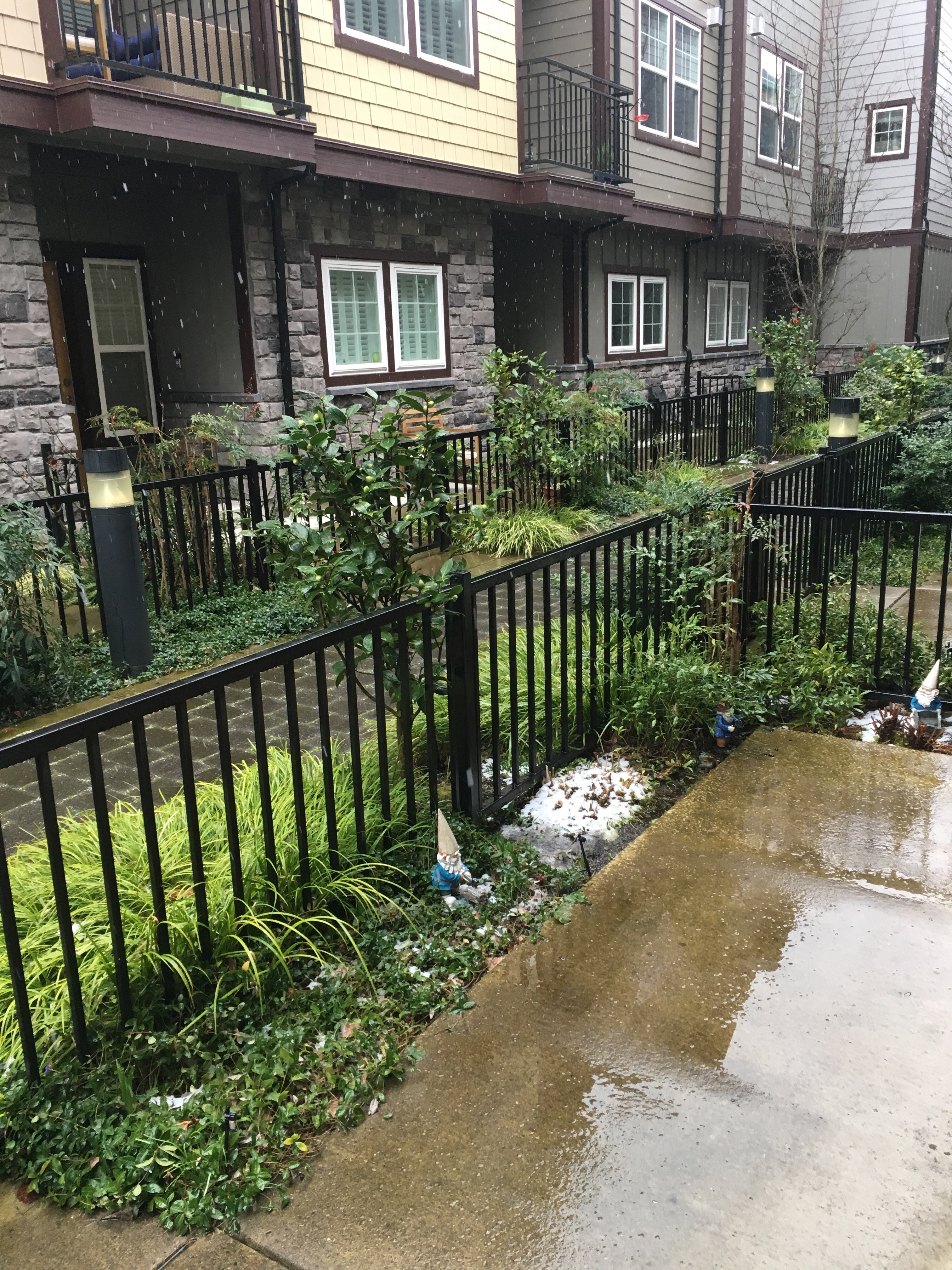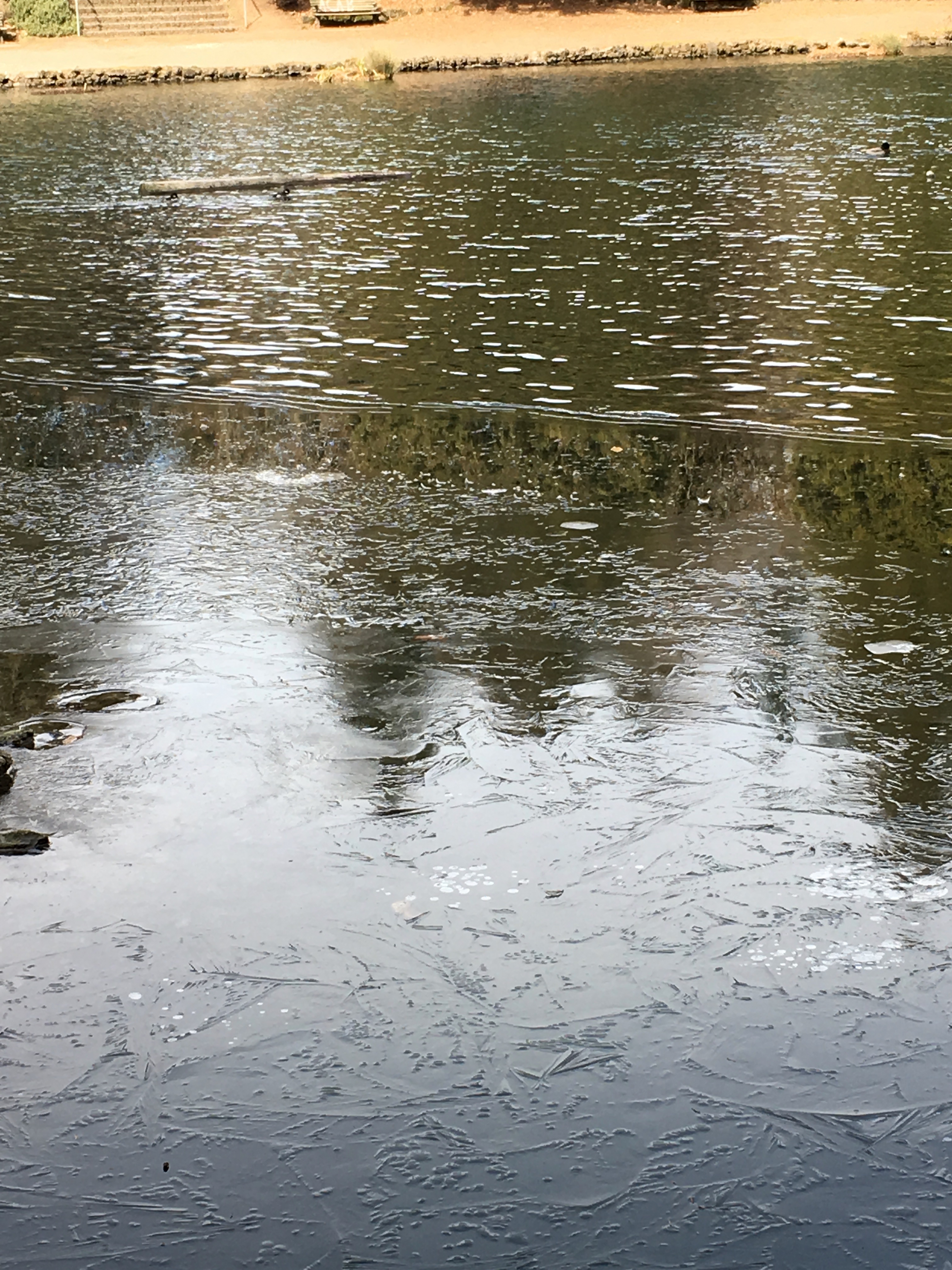 Then the temperature went up two degrees, and it all melted away, except for the little lake in Laurelhurst Park, half of which stayed frozen. Sticks tossed on it bounced. Frozen weeds looked like trapped Inferi. Confused ducks walked on it.
