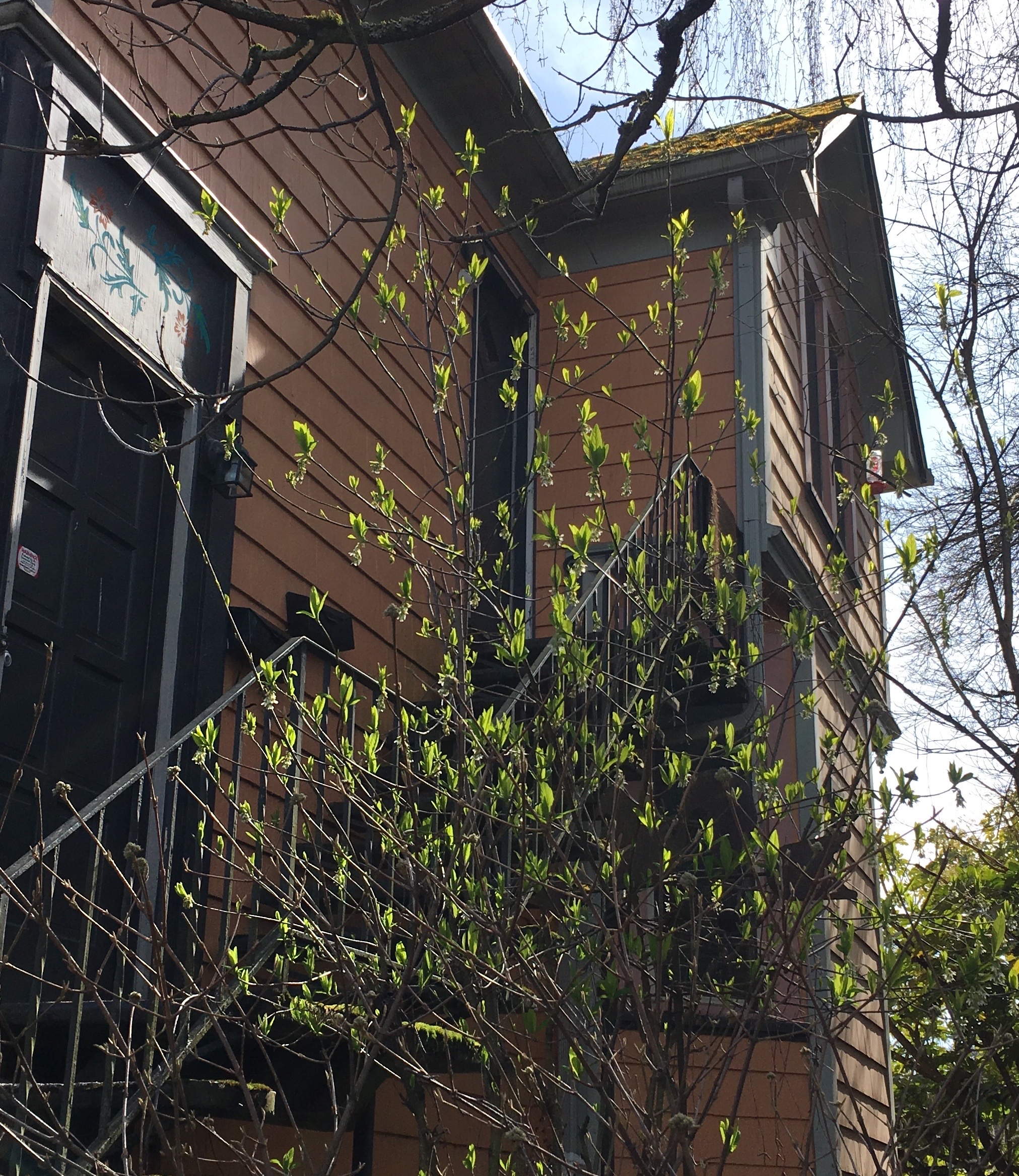 We saw signs of spring in bright baby green leaves and tiny daisies, as well as this cute but ominous St. Paddy’s decoration…a raven with shamrock.