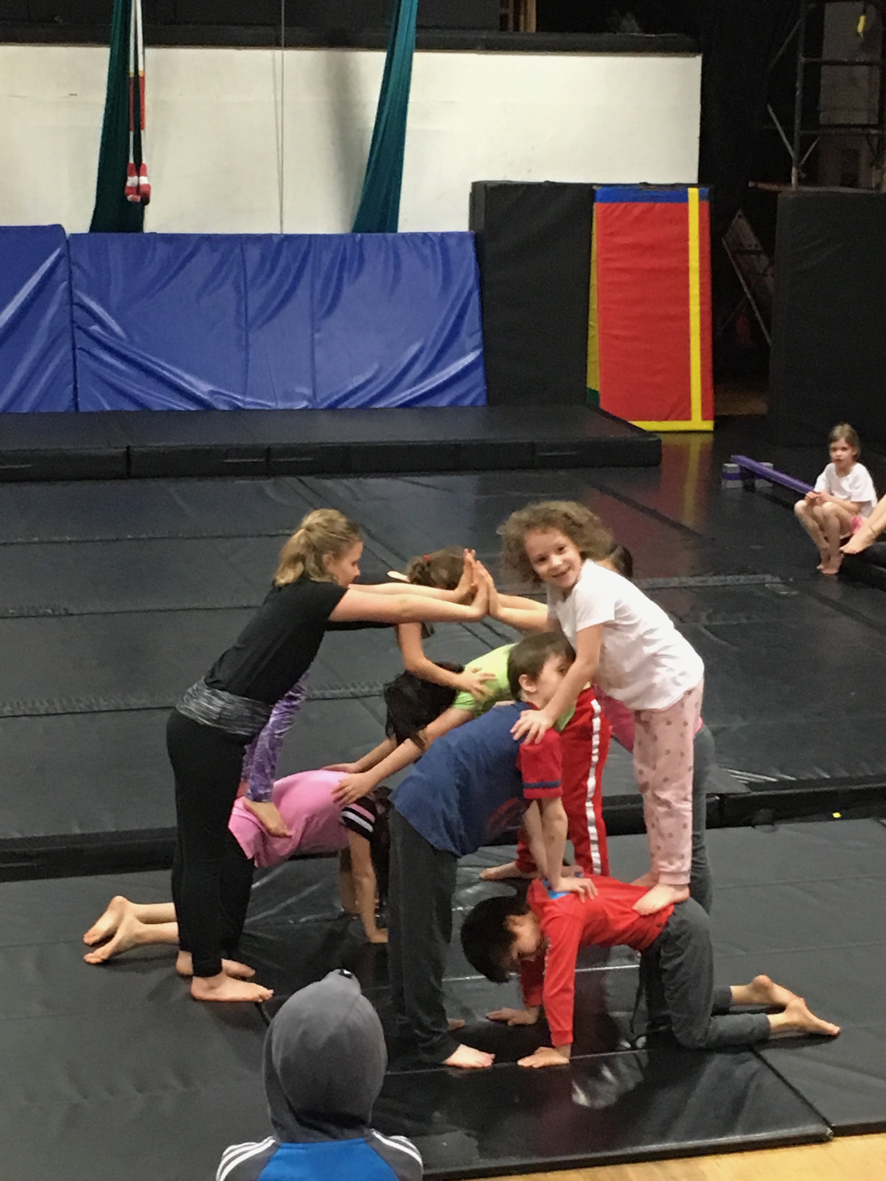 There was mat tumbling, pyramid building, and quite a bit of swinging on trapezes. I asked if they had classes for kids my age, and was invited to sign up! (I was only half joking).