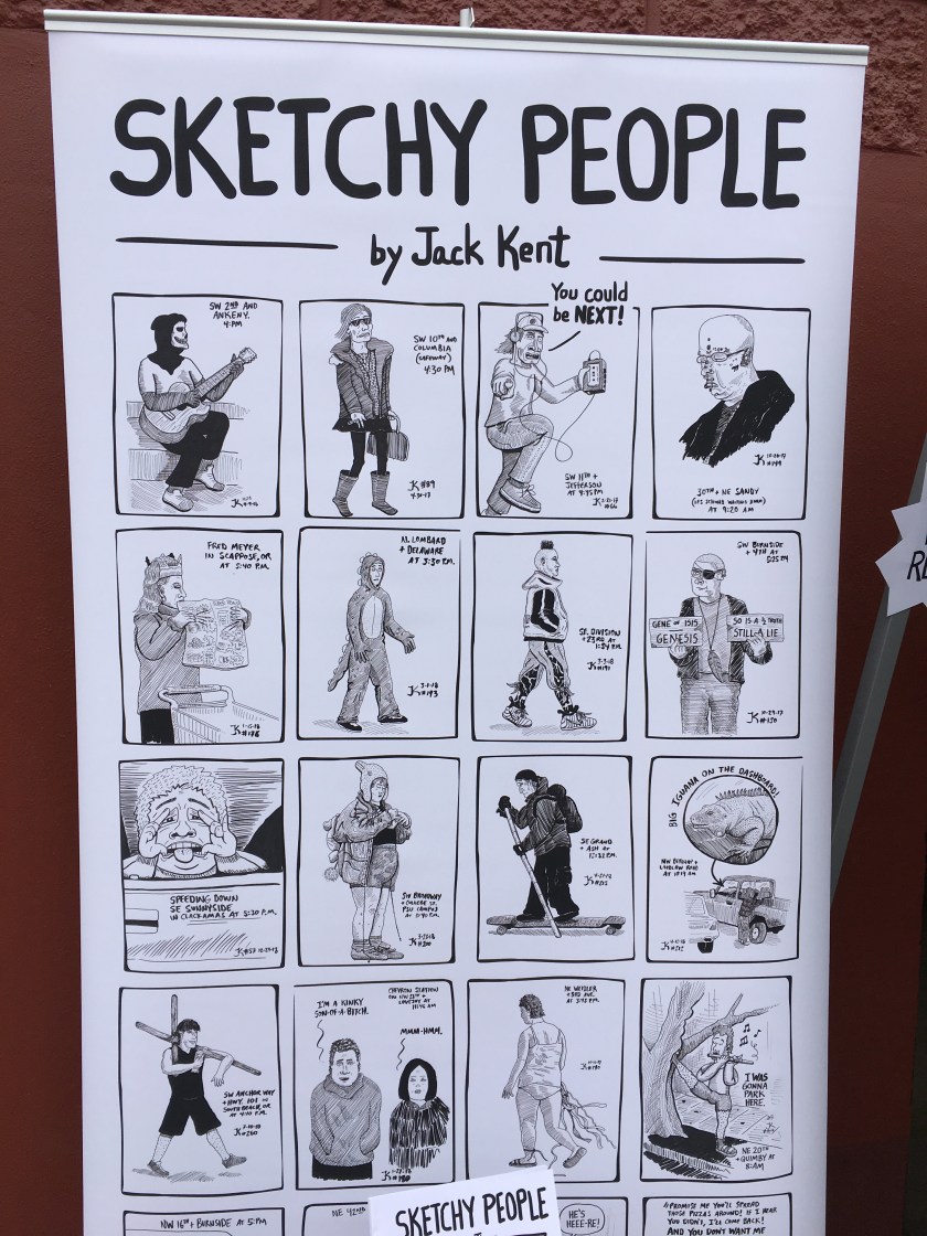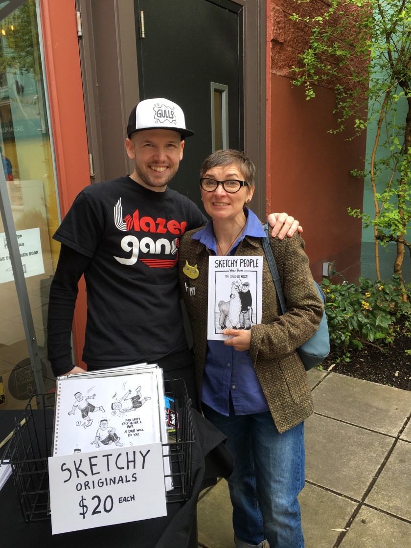 We have made some good friends here in Portland. One of our favorite folks is Jack Kent, a cartoonist we met years ago at a cartoon show. We got to visit Jack today at Bridge City Comics up in the Mississippi neighborhood, where he was having a book signing and sale for his new book, Sketchy People Year Three.