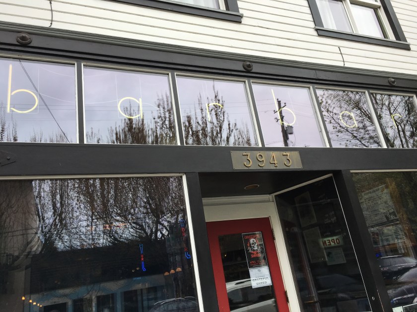 After we had visited Cesar and Jack and got our picture taken, we went in search of lunch. The Mississippi neighborhood has dozens of restaurants, but it was Sunday, and there were long waits at most of them. Finally we found Bar Bar, which had fries for Grandpa Nelson, a burger for me, and a veggie burger for Auntie Bridgett. We enjoyed listening to music and watching ice skating and basketball on the t.v.