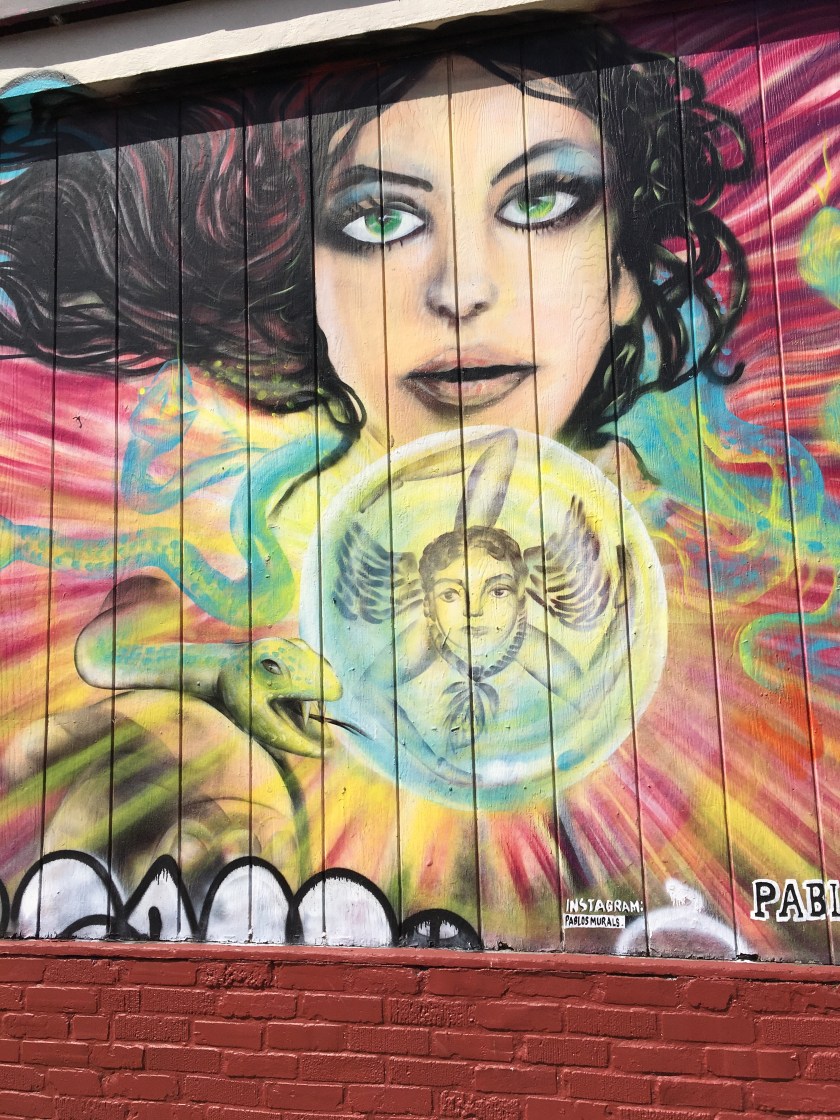 We wondered some more and got hungry, so we stopped in at Bunk for really tasty sandwiches and French fries. It has this wonderful mural on the wall, and though I have no idea who it is, it was fun eating lunch near him.