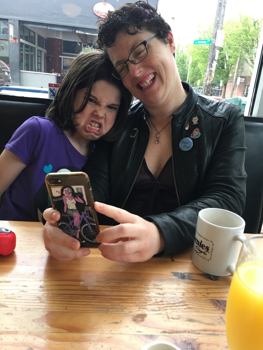 First, of course, was breakfast. I met Katie and cousins Jasper and Kestrel at Genie’s, a friendly, delicious diner just a few blocks away. Kestrel and I read together and Jasper and Katie had fun being silly. Katie gave me a card that she wrote and Kestrel made (it was beautiful) and Jasper gave me a coaster he had decorated. It was beautiful AND useful.