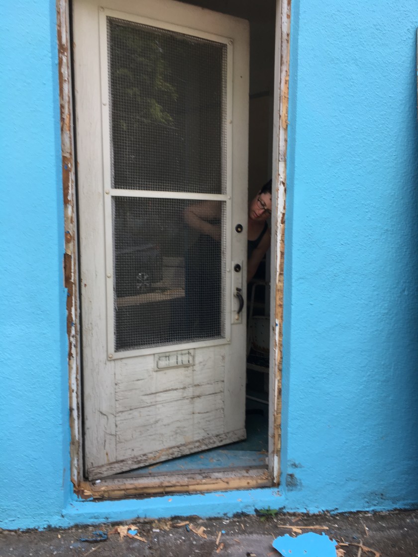 Then the cousins headed off with their Dad Dave and Katie and I headed to her new building. We spend a few hours sweating and prying and hammering, taking down a plywood panel that was covering a back door, so she could use the door. It will allow her and the kids to go upstairs to the apartment without having to go through the book shop.