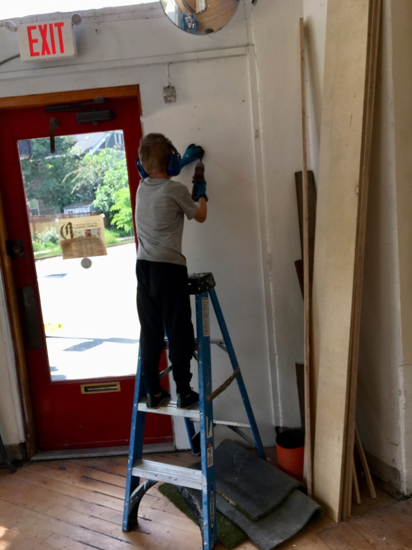 After we declared victory over the door, Katie’s friend Patrick and his son Arlo came to help. Patrick ripped out an old bookcase and Arlo removed random screws and nails from the walls with his power drill.