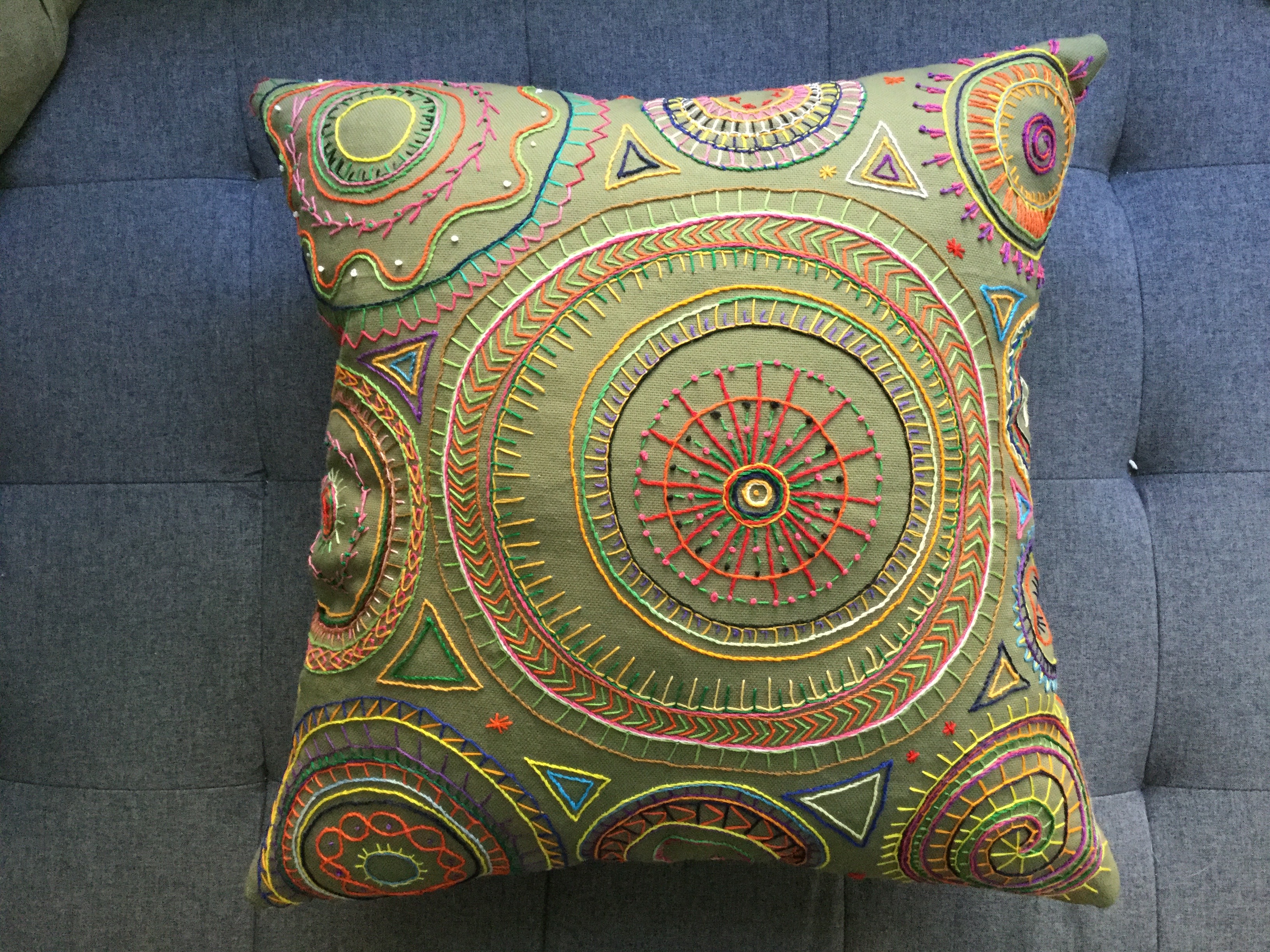 All this seeing has lead me to make some art. I started this pillow as embroidery practice almost two years ago, with just some circles traced from bowls in the kitchen.