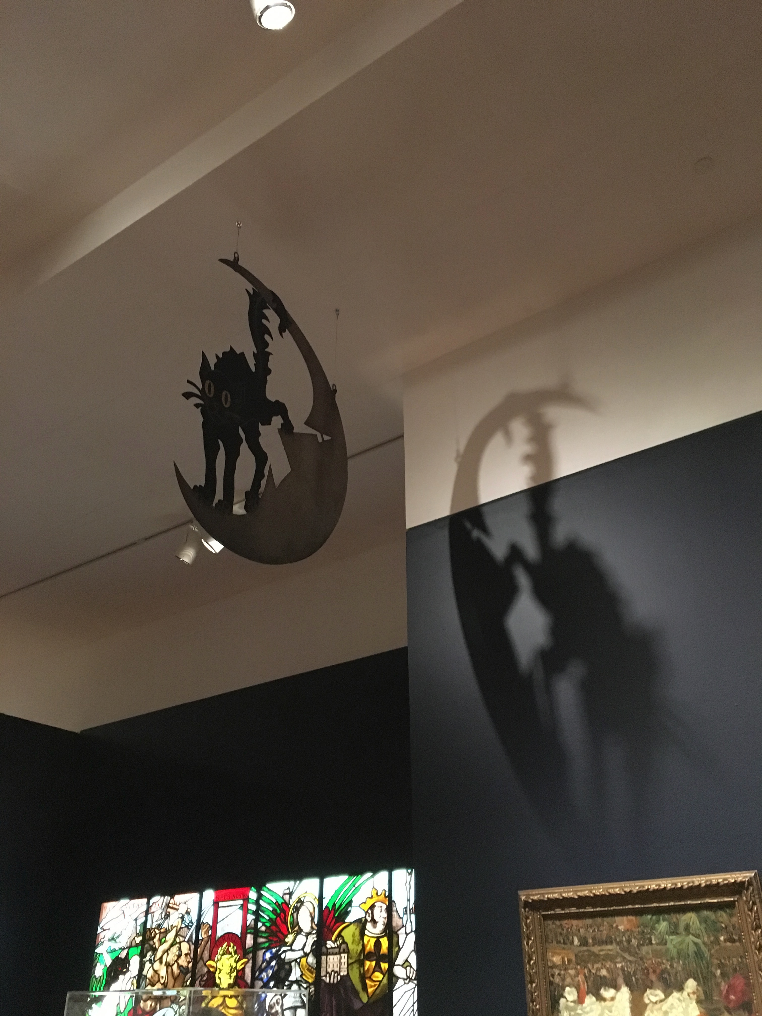 Light plays tricks, too. I saw a reflection of myself in a glass display case at PAM and put myself into the picture. The shadow of Le Chat Noir was as beautiful as the sign.