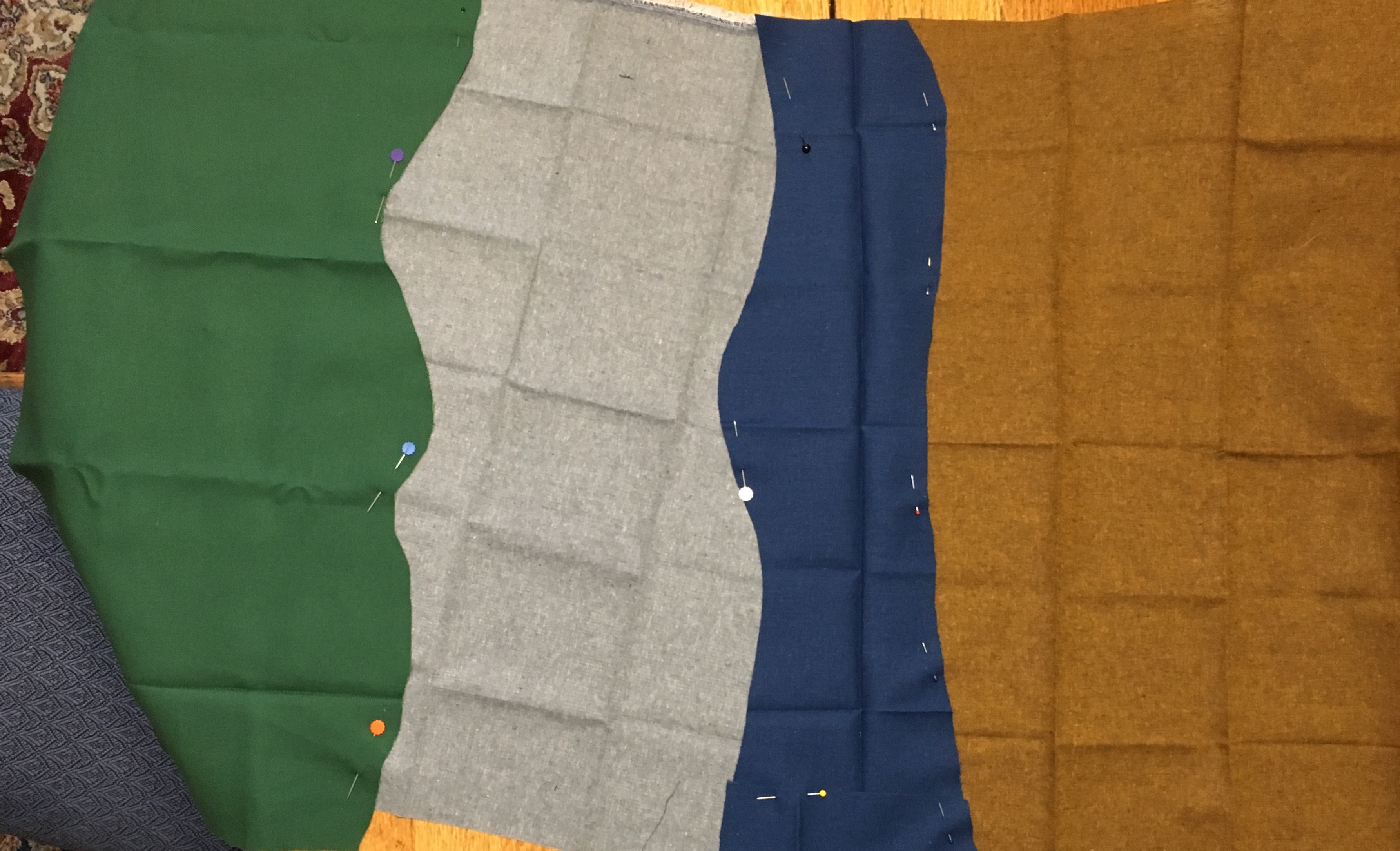 I have finally started my piece of art inspired by the colors and places of Portland, with fabric I bought last fall. It will be an impression of a map, a feeling, rather than one you could use to get around, but you can see the west hills, downtown, the river, and the Eastside. This is just the first layer. I will show you more as I make it happen.