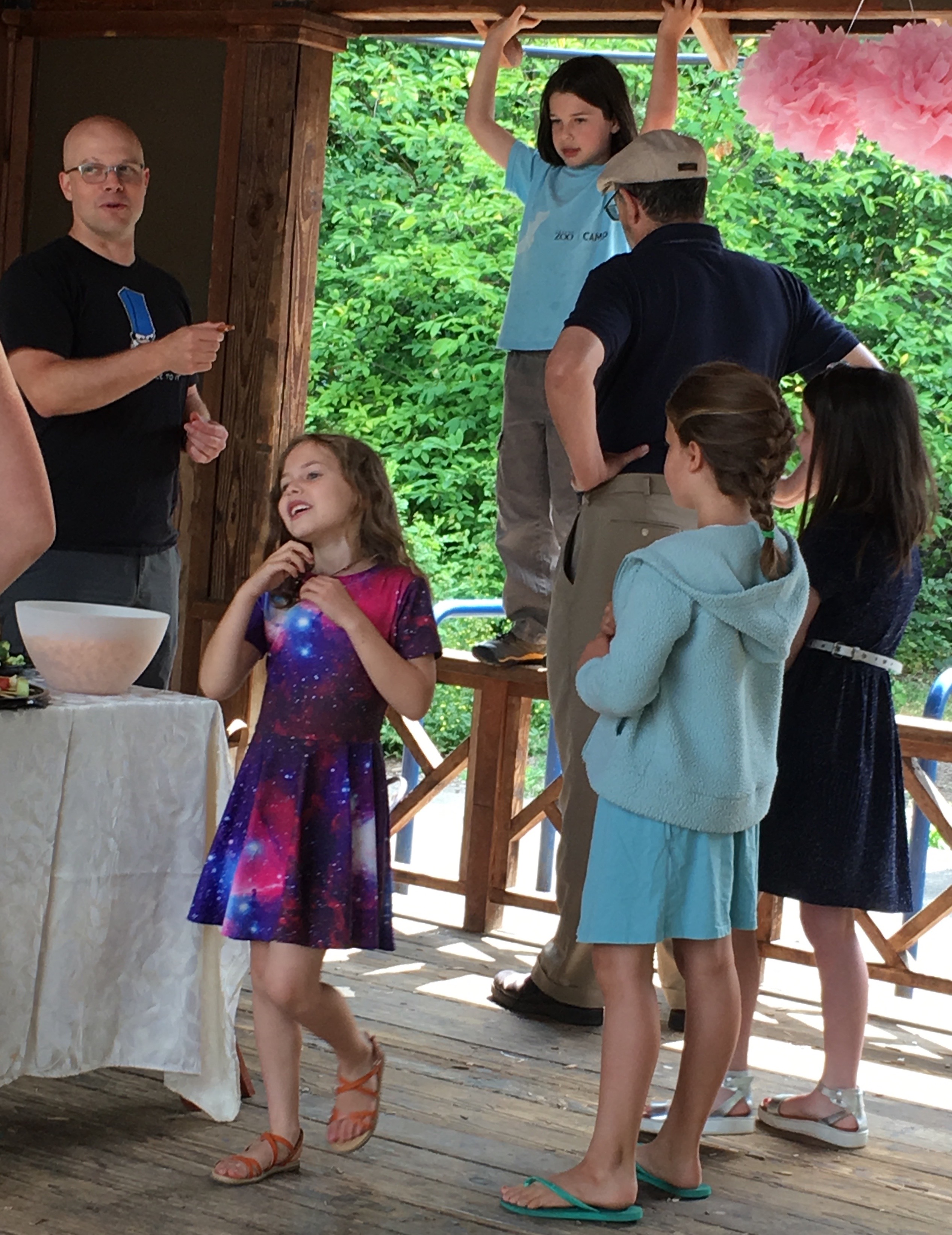 I sewed the comets, and Kestrel invented the game and scoring plan. Chelsea and I laid out the game area with planets and suns for targets. The game changed as the kids played, which made it even more fun! Everyone was a really good sport.