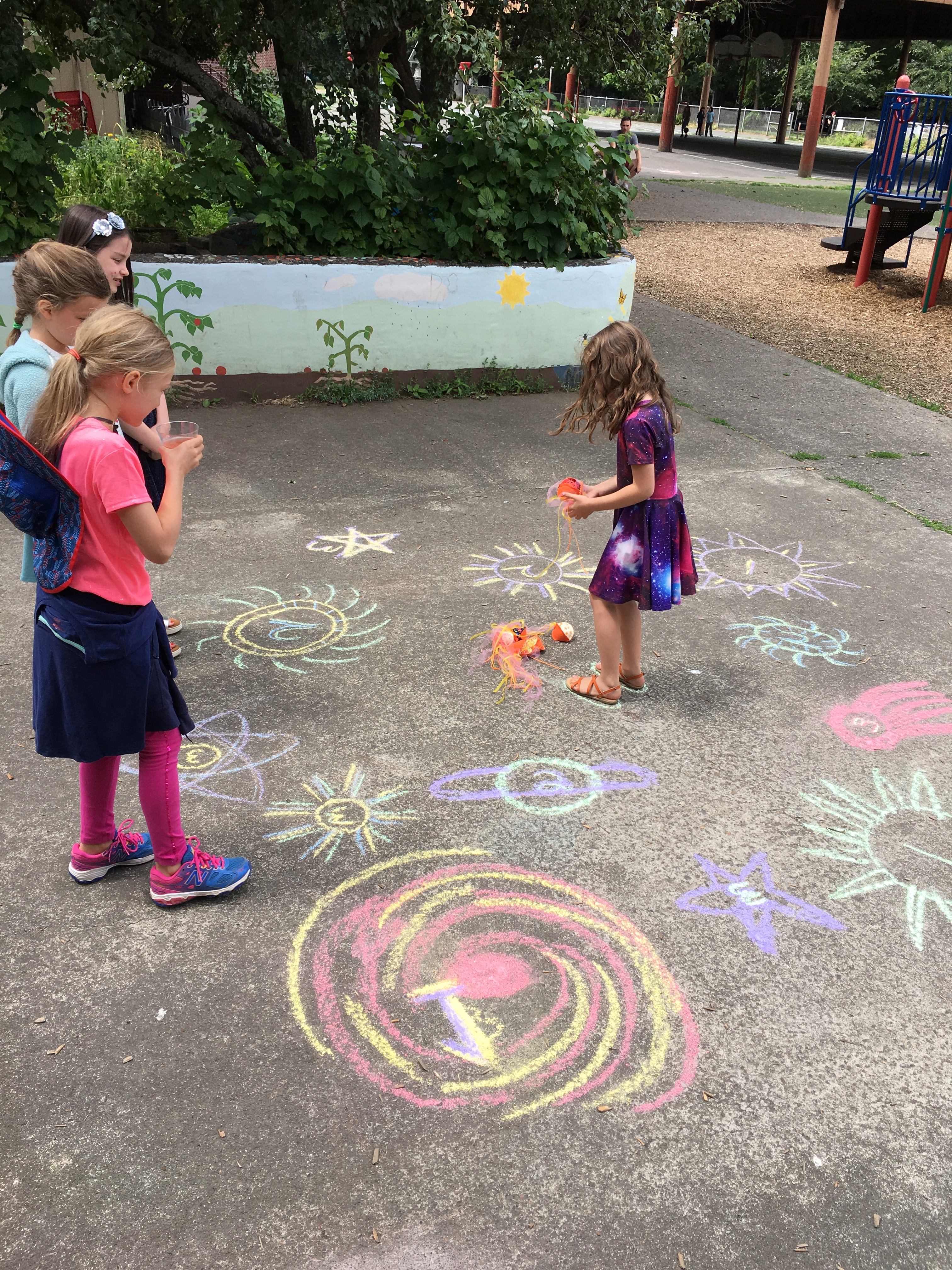 The Galaxy themed party was held just across the street from Kes’s house, in the gazebo behind her school, Abernethy Elementary. It is a very nice place, with the school garden and a mural by Botjoy artist Gary Hirsch.