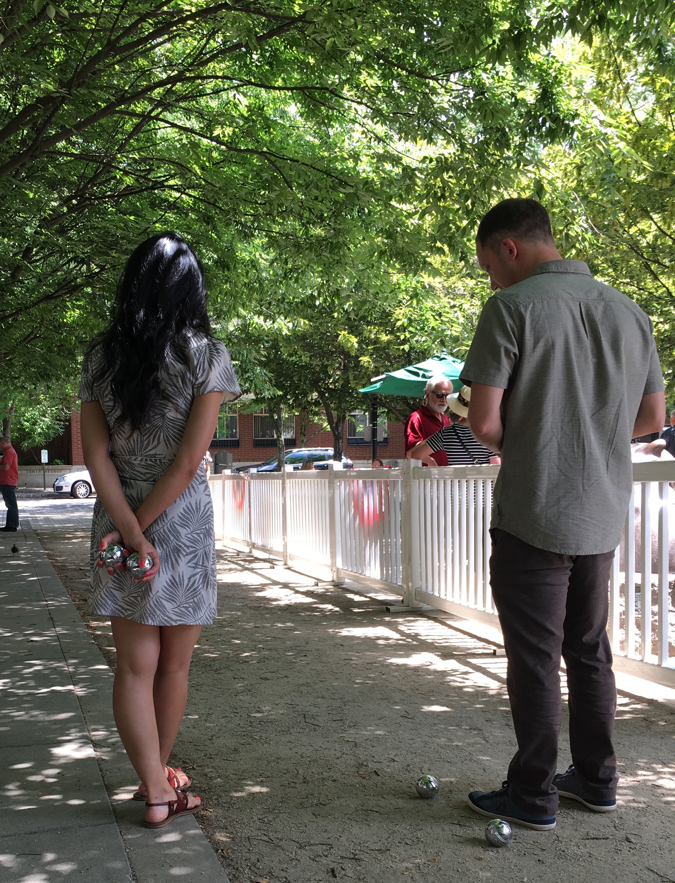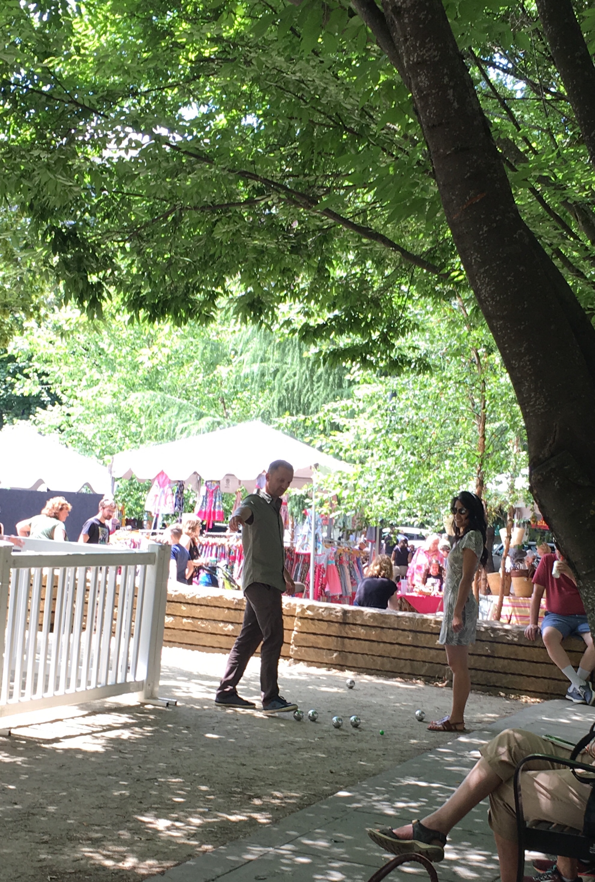 Grandpa Nelson enjoyed talking to fellows about their vintage Citroens. There were balls set out for a game of Boulles (also called Bocci ball in Italy) and we watched a cute couple play.