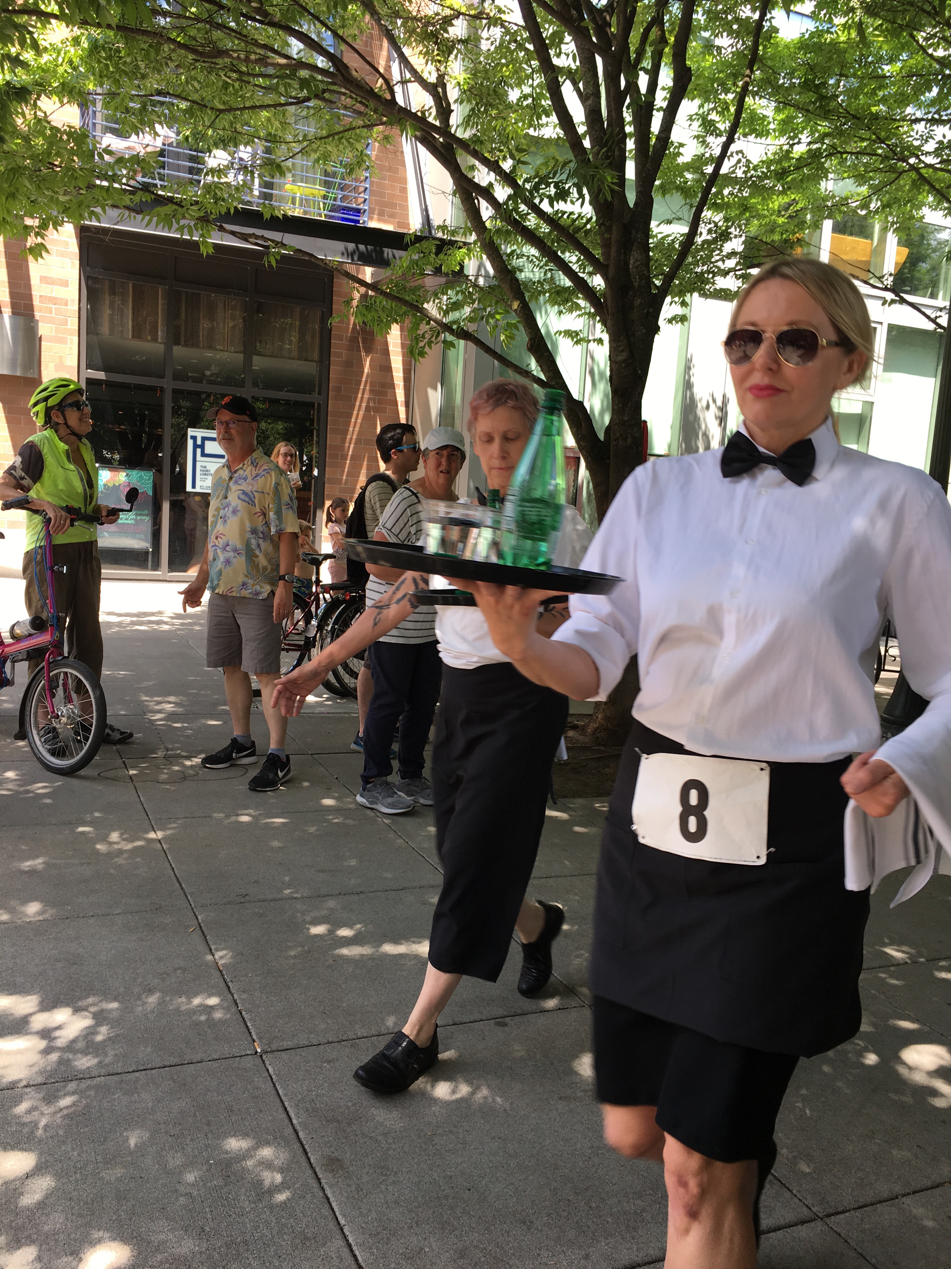 They were judged not only on speed, but on spillage. It was especially inspirational to me because, as you know, I spill everything. The two waiters who crossed the finish line first did not win, because they had spilled too much. The fellow who came in third had a totally dry tray, and was declared the winner.