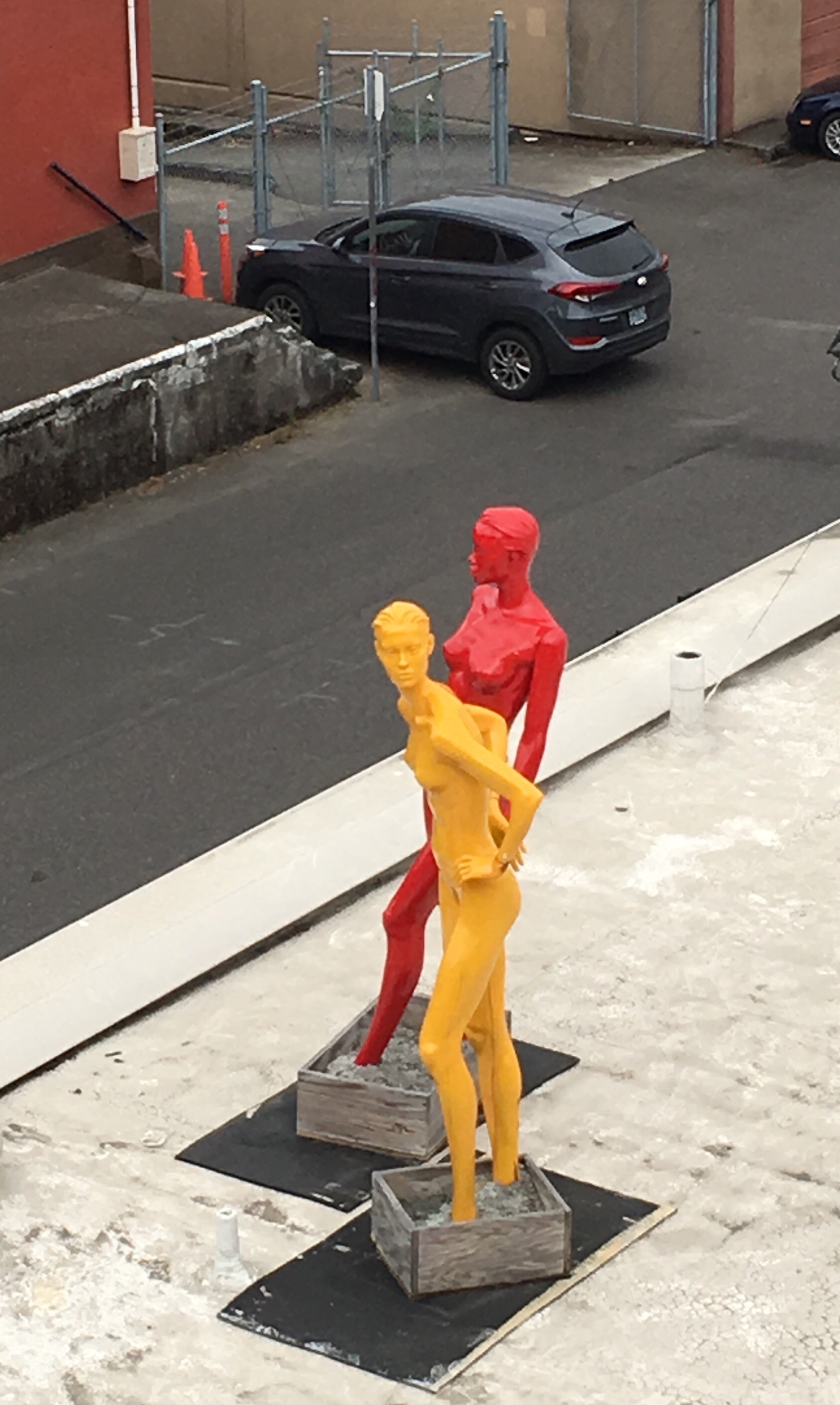 More modern art installations stood on other buildings, like these store mannequins looking surprised to be out in the open.