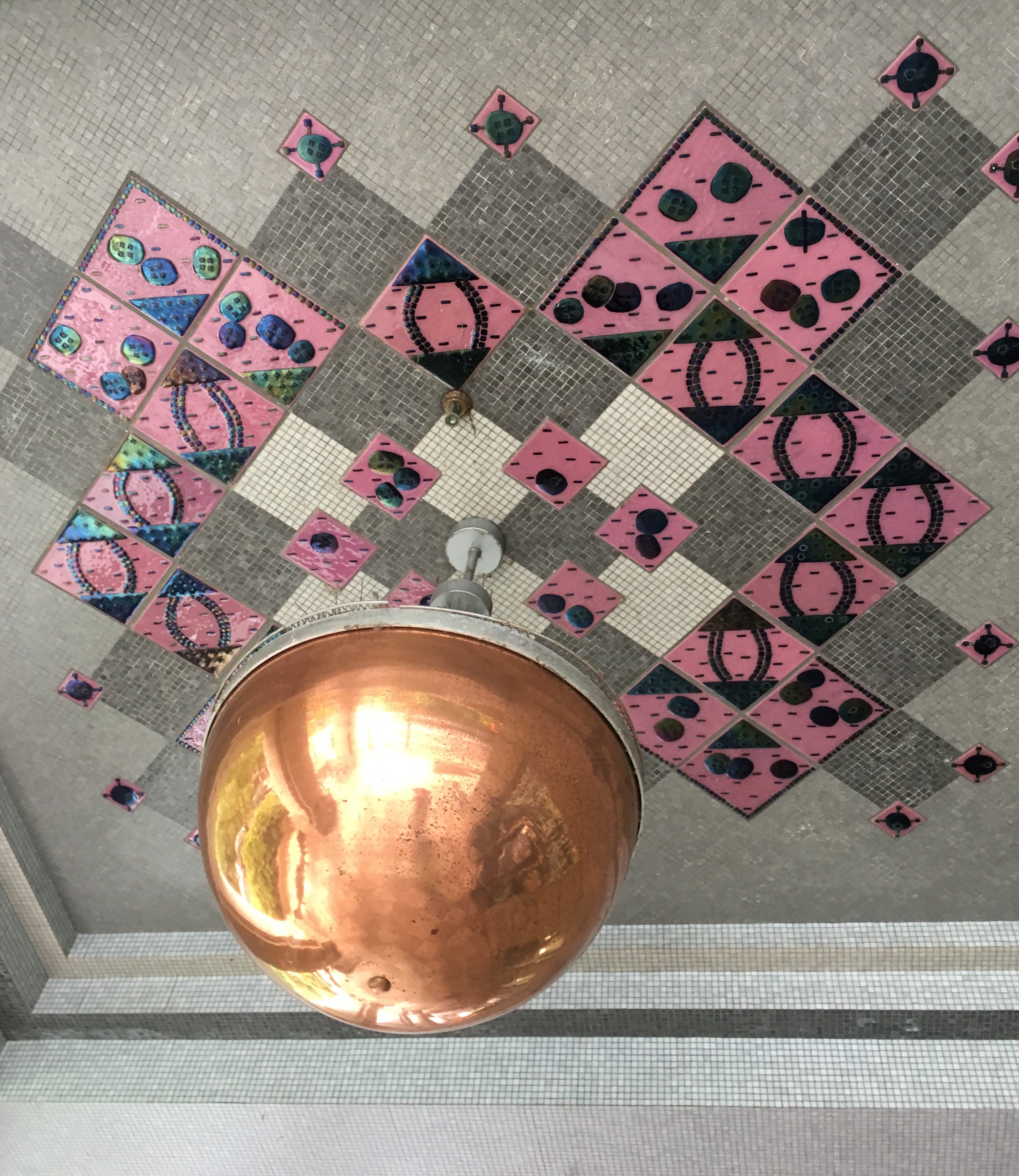 Once across the bridge we stopped for lunch at The Good Earth, a fresh sandwich shop. Very tasty and friendly. It is in the same building as the Police Station, and there are some fancy decorations in the walkway out front.