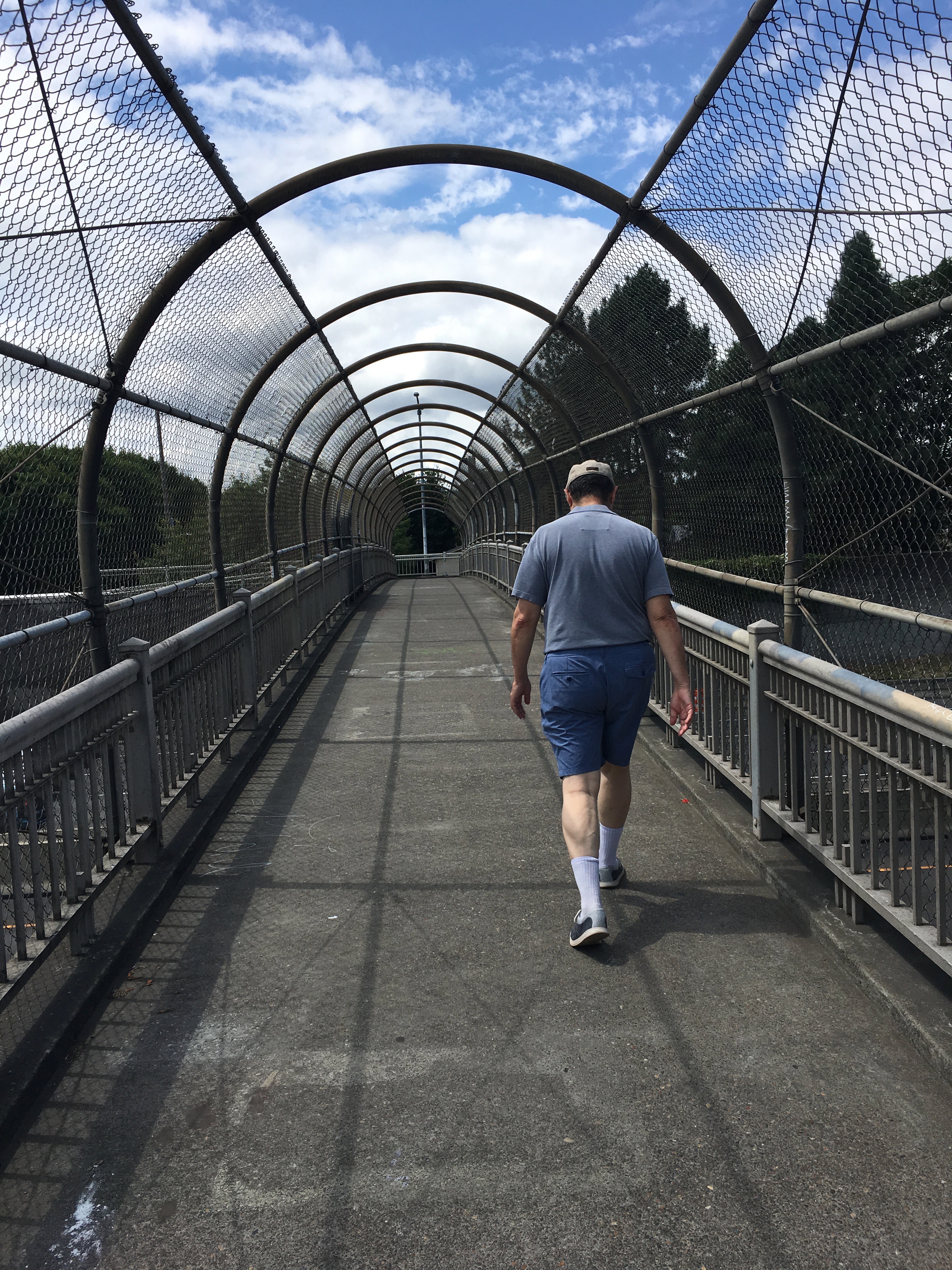 By now we were eyeing our return home, and crossed the 5 freeway on another pedestrian bridge. This one had good views of downtown, and our favorite skyscraper, Big Pink. It dropped us at Overlook Park, where we had views of the Fremont Bridge and a Trimet stop for the yellow line train. This took us to the Pearl and Downtown via the Steel Bridge, and we transferred to the magic number 15 to get us back.