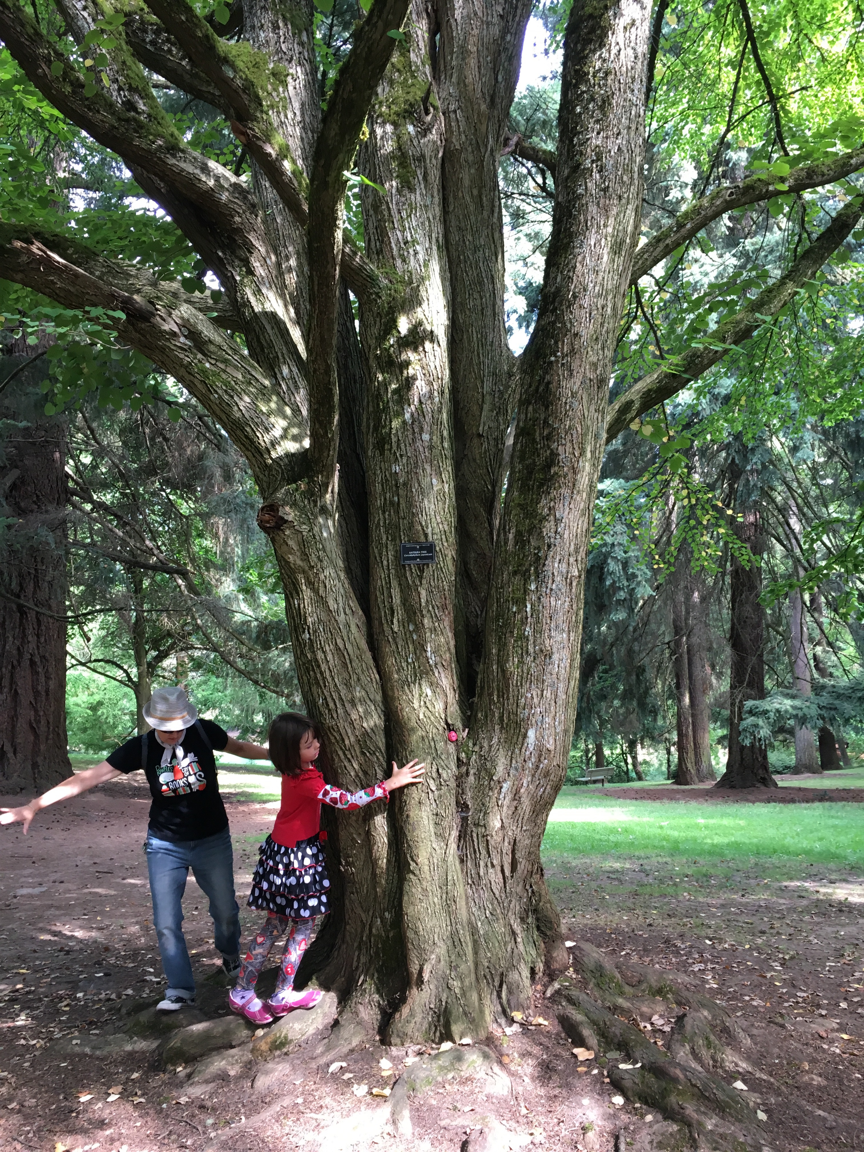 We continued towards home, stopping at Laurelhurst Park to play on the swings. Liza is only six and can pump herself really high! We also found the Catsura tree, Portland Heritage Tree number 160, which has big bumpy roots to walk on. Then we walked through the foresty part of the park.