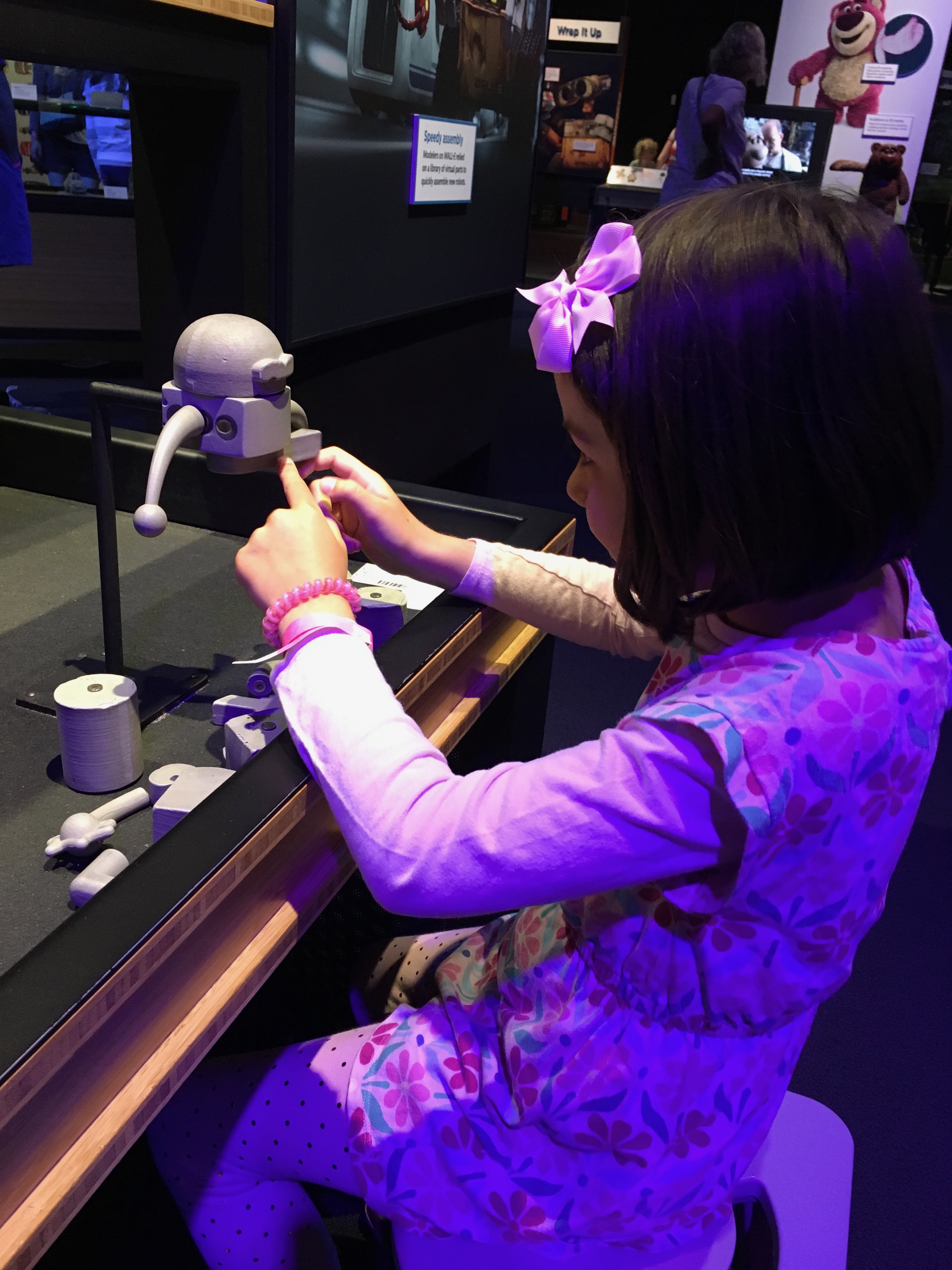 Their special exhibit for this summer is the Science of Pixar, which shows all the modeling work and computer programs that need to be created to make the Pixar movies like Toy Story, The Incredibles and Bug’s Life. Some of these programs are written by people, and some are written by other programs! Yes, some computer programs are so complicated that it is easier and faster to create a program to write it.