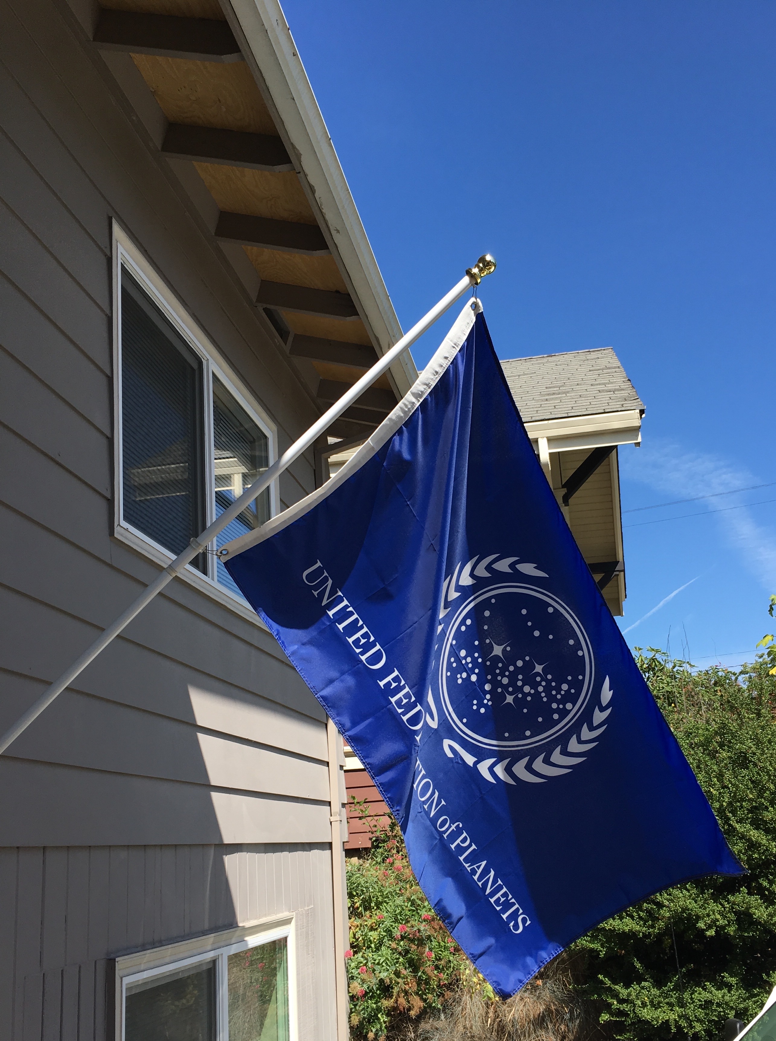Harry Potter or Star Trek flags show a certain geek camaraderie, which I like very much. These represent make believe worlds with heroes and values I respect.