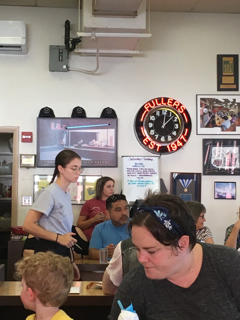 As always seems to happen, we got hungry as soon as we arrived! The food booths were very crowded, so Grandpa Nelson found us Fuller’s Coffee Shop, which has been on the corner of NW Davis and 9th since 1947, and looks like it hasn’t changed much in decor since opening day. However, the burger, grilled cheese sandwich and French fries were delicious and very affordable. Sixteen dollars for a three person lunch is a bargain in town!