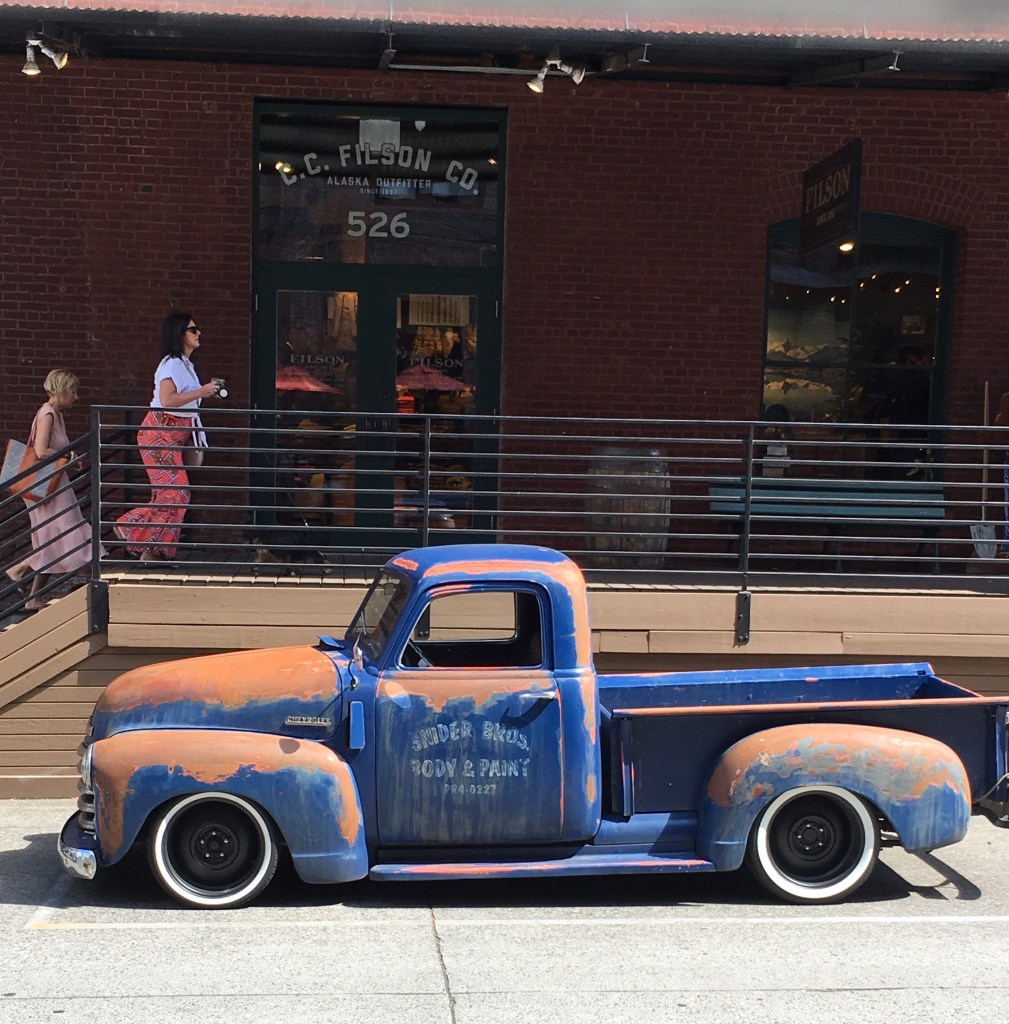 We saw this truck parked across the street. From the strikingly awful condition of the paint and the business name “Snider Bros. Body and Paint”, assumed it was a prop, a display for the sake of historic flair. But then two fellows came out, started it up, and drove away!