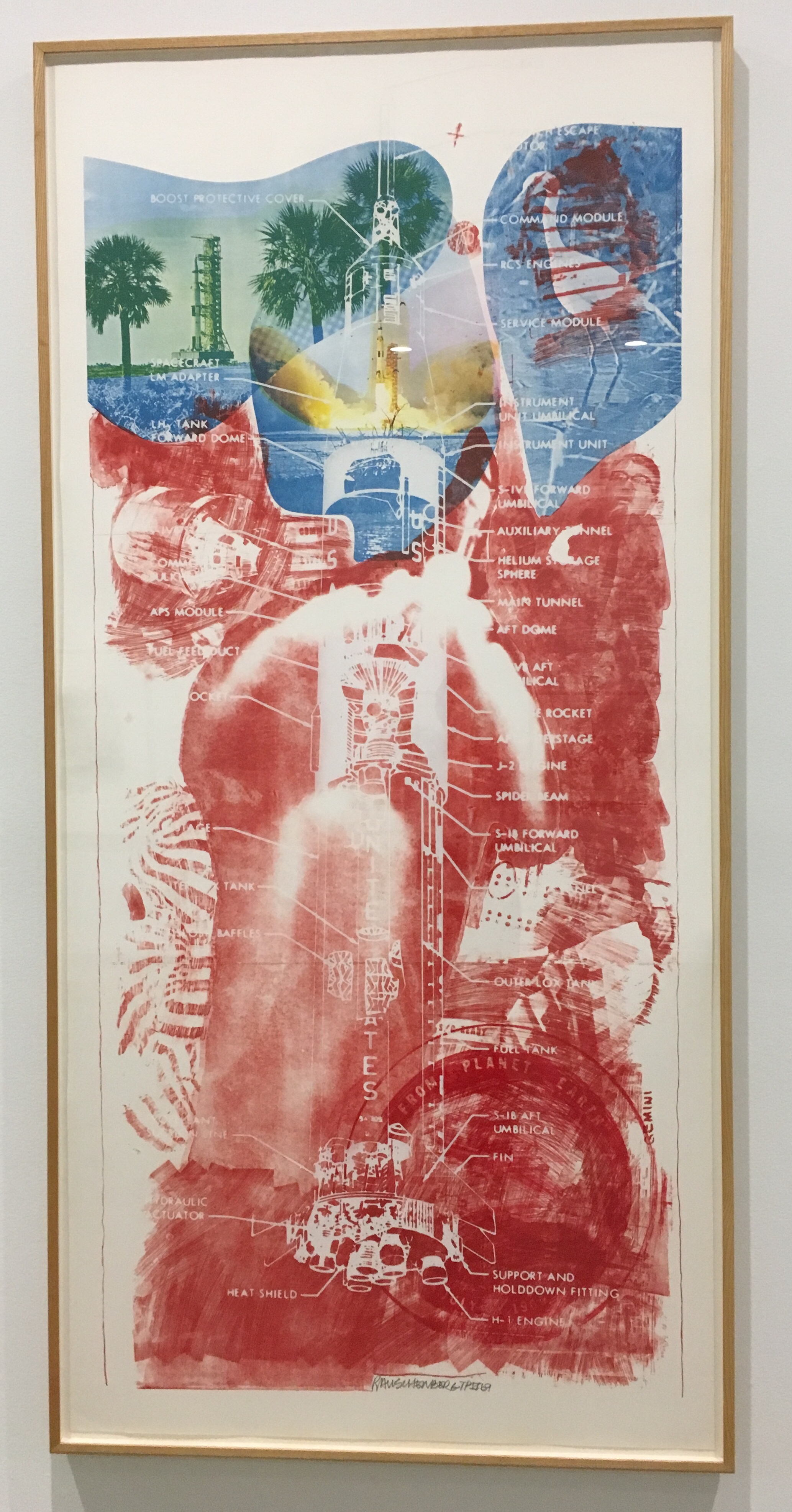 Upstairs was a show of Robert Rauschenberg, a printmaker who worked in the 1950s and 1960s, including using some NASA-provided materials to make wonderful modern art about the moon launch.