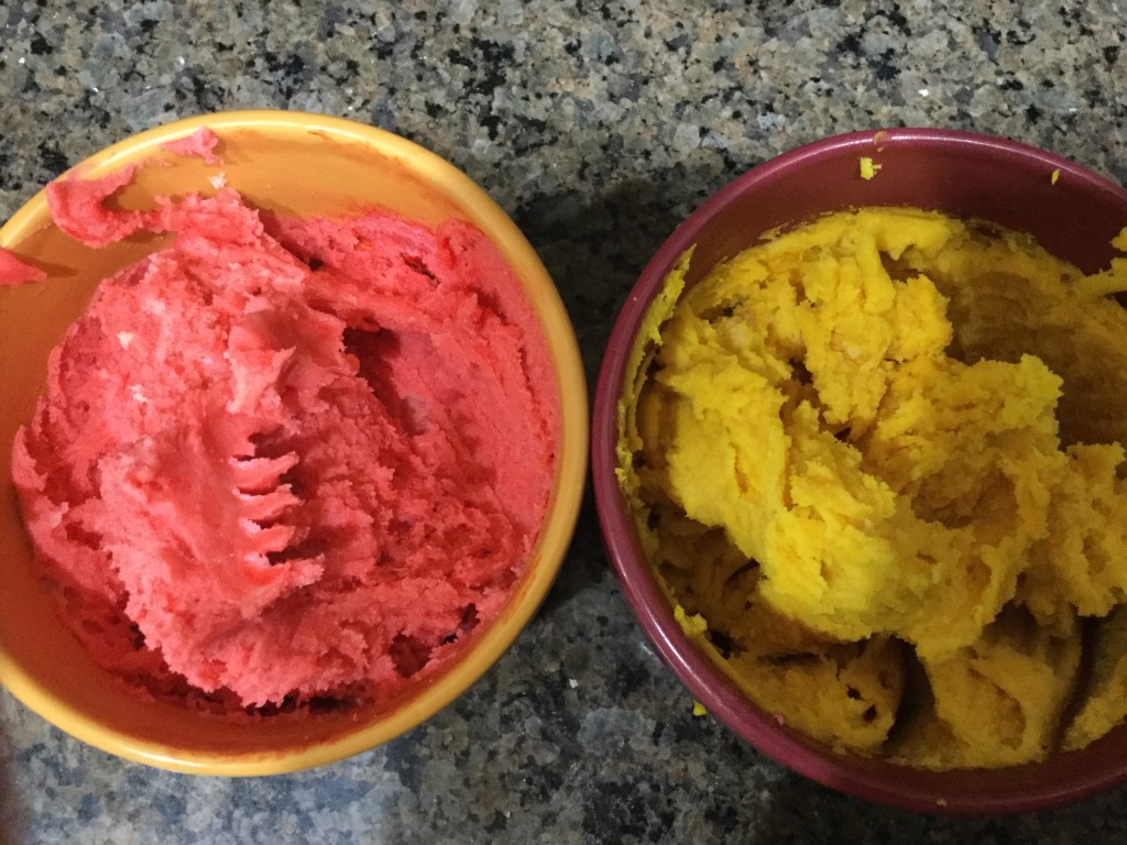 The second batch, using more specific directions and learning from experience, was better. They are toothy, lemon-y and pretty. I like the marbled look better than flat color!