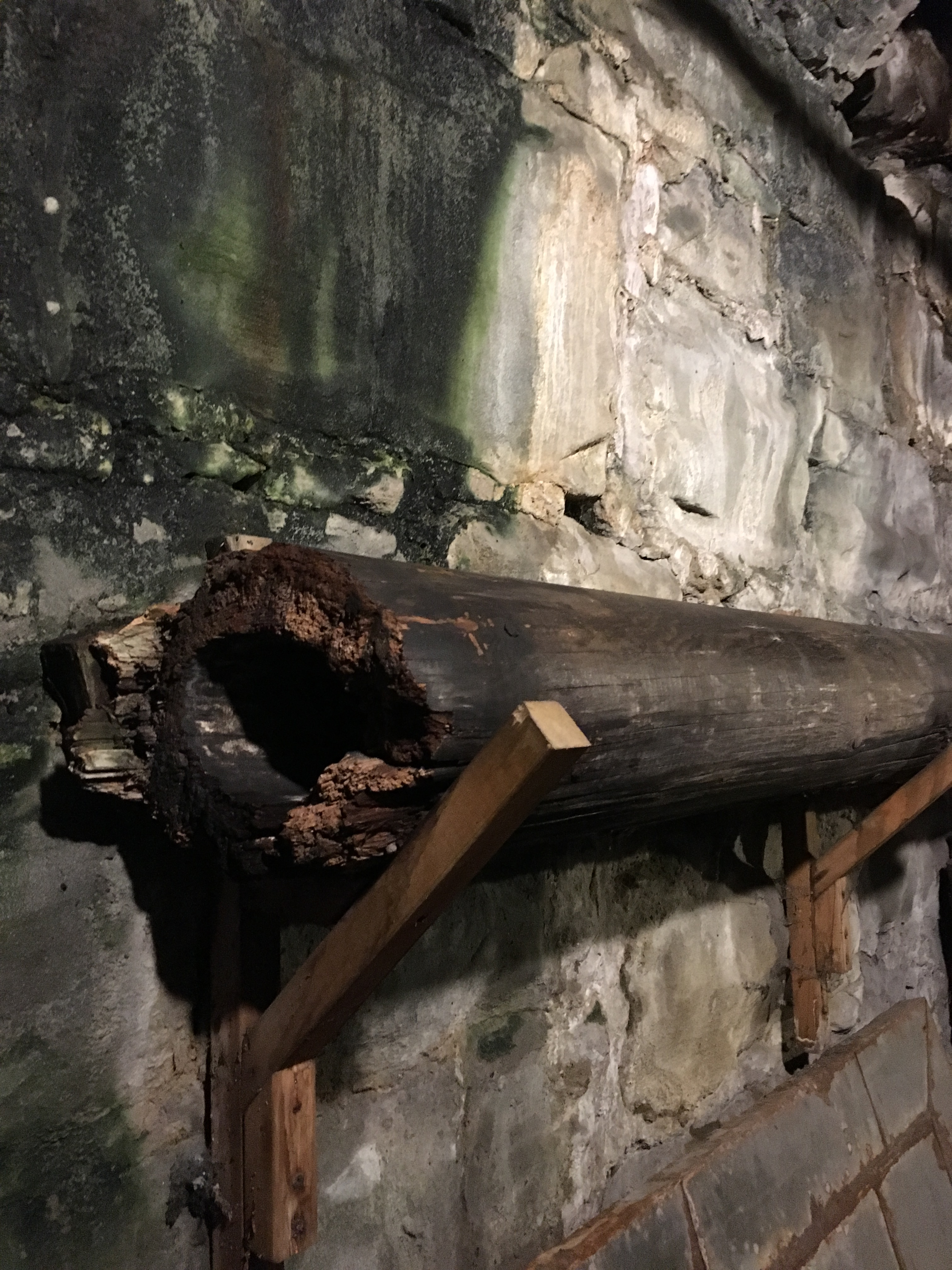 Last month on the Seattle Underground tour, we saw an example of one of these wooden pipes that had been used in Seattle for many years. Since sewers and water systems were invented before steel or plastic, pipes to carry water IN and poop OUT were made by drilling two inch holes in logs and joining the logs together with wooden pegs.