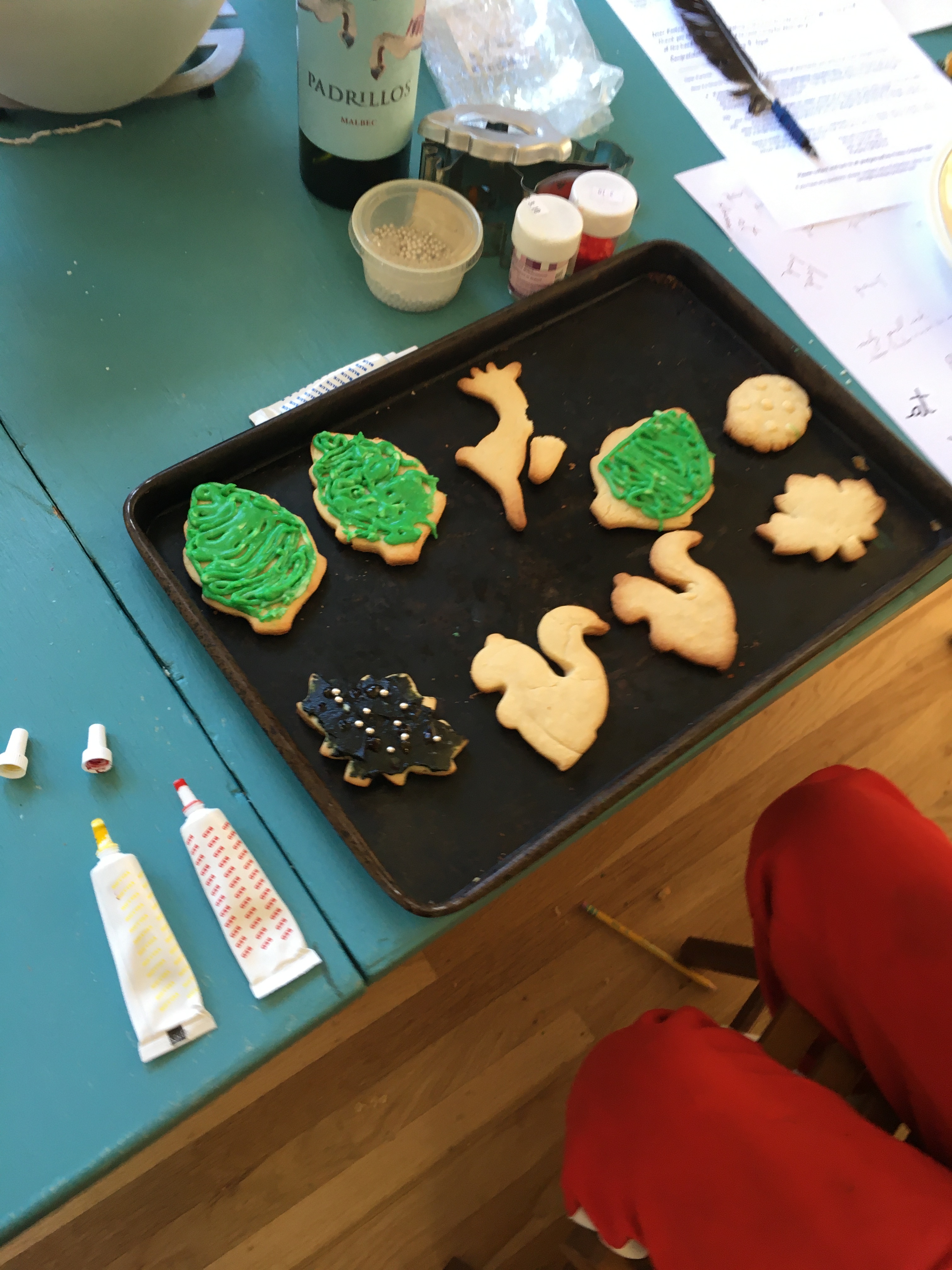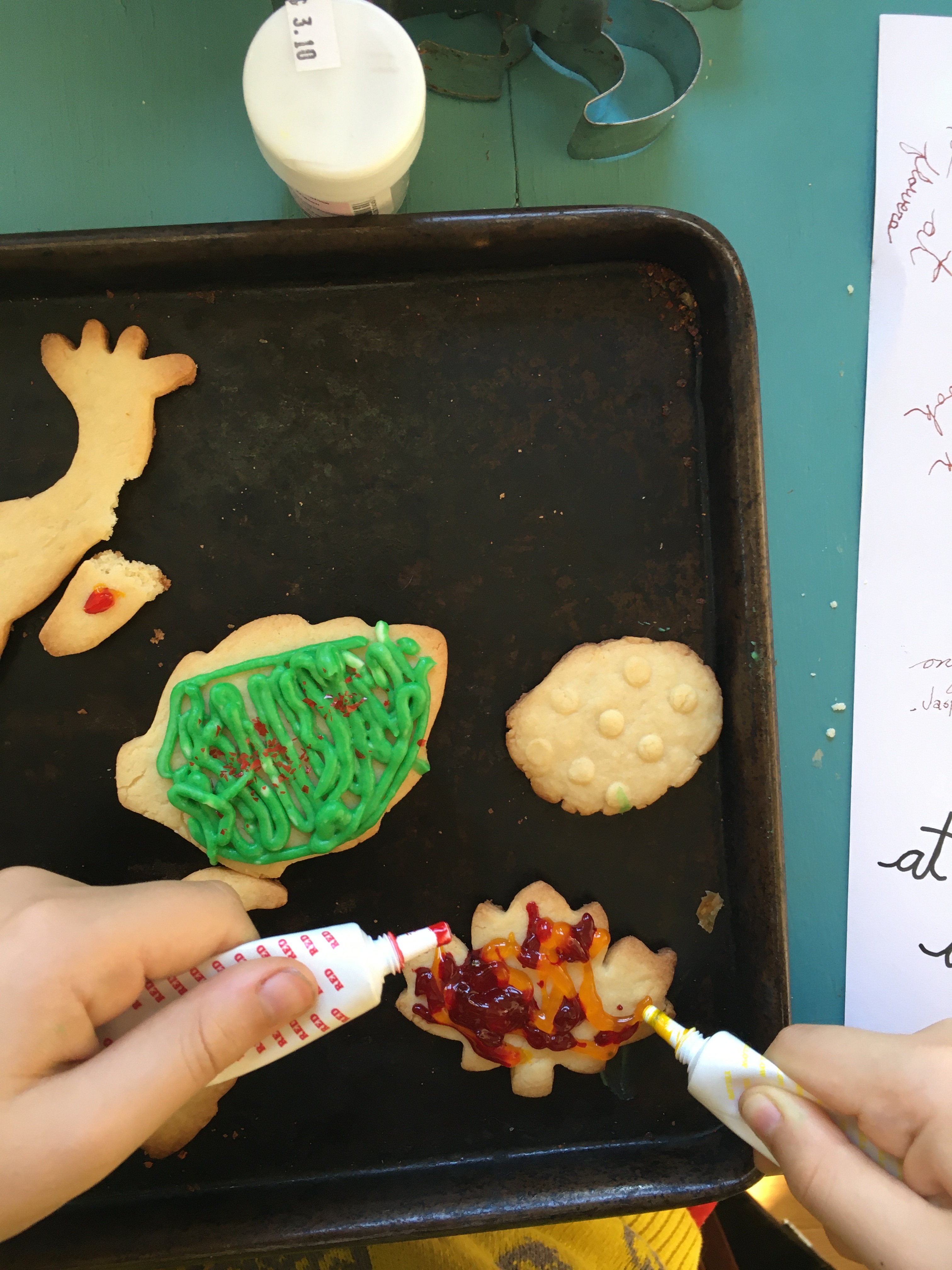 The other day I got to go make cookies with Cousins Jasper and Kestrel. I took some sugar cookie dough and some frosting, and even a few piping bags.