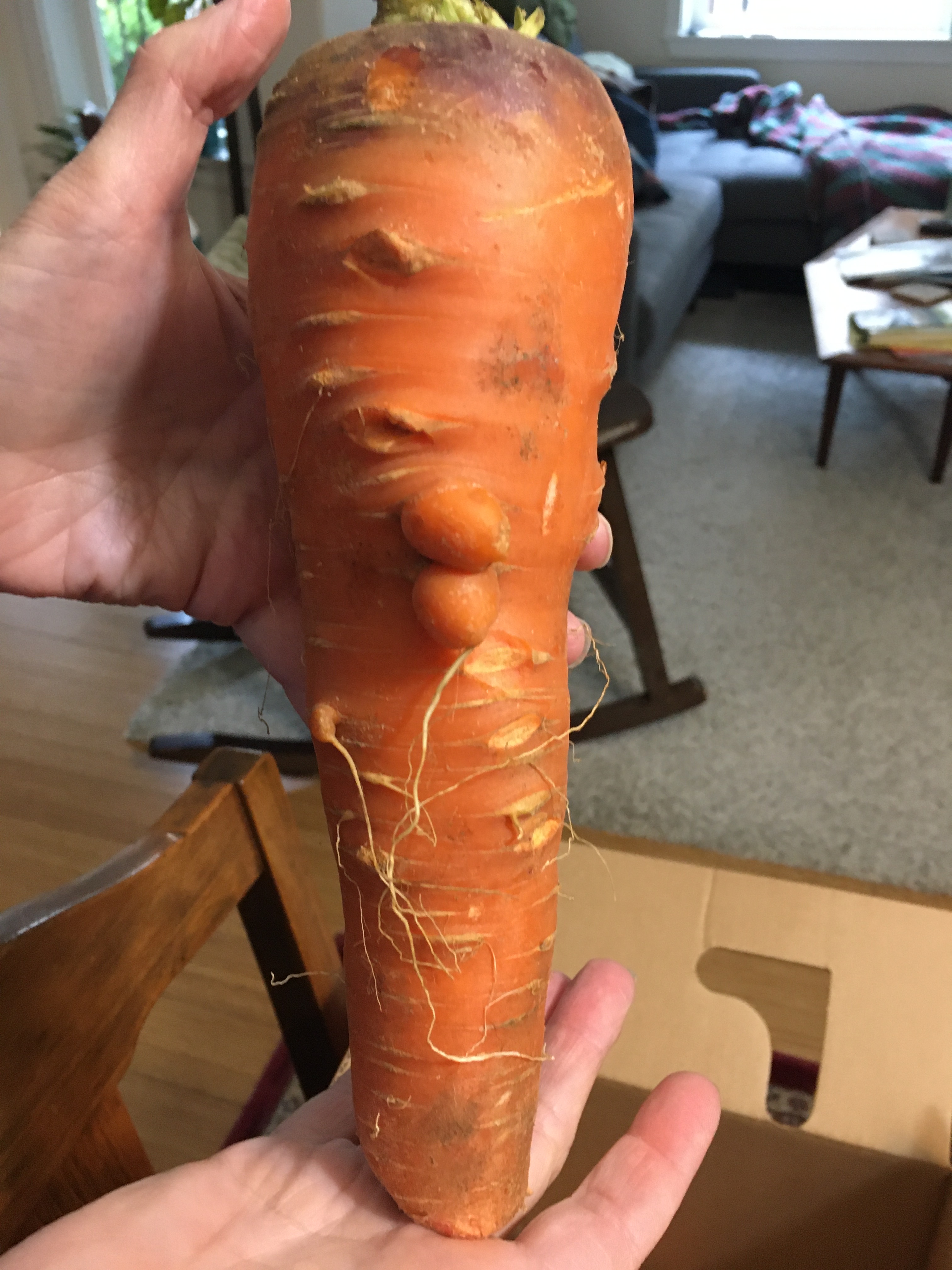 This carrot with one eye and two noses will make a fine soup…