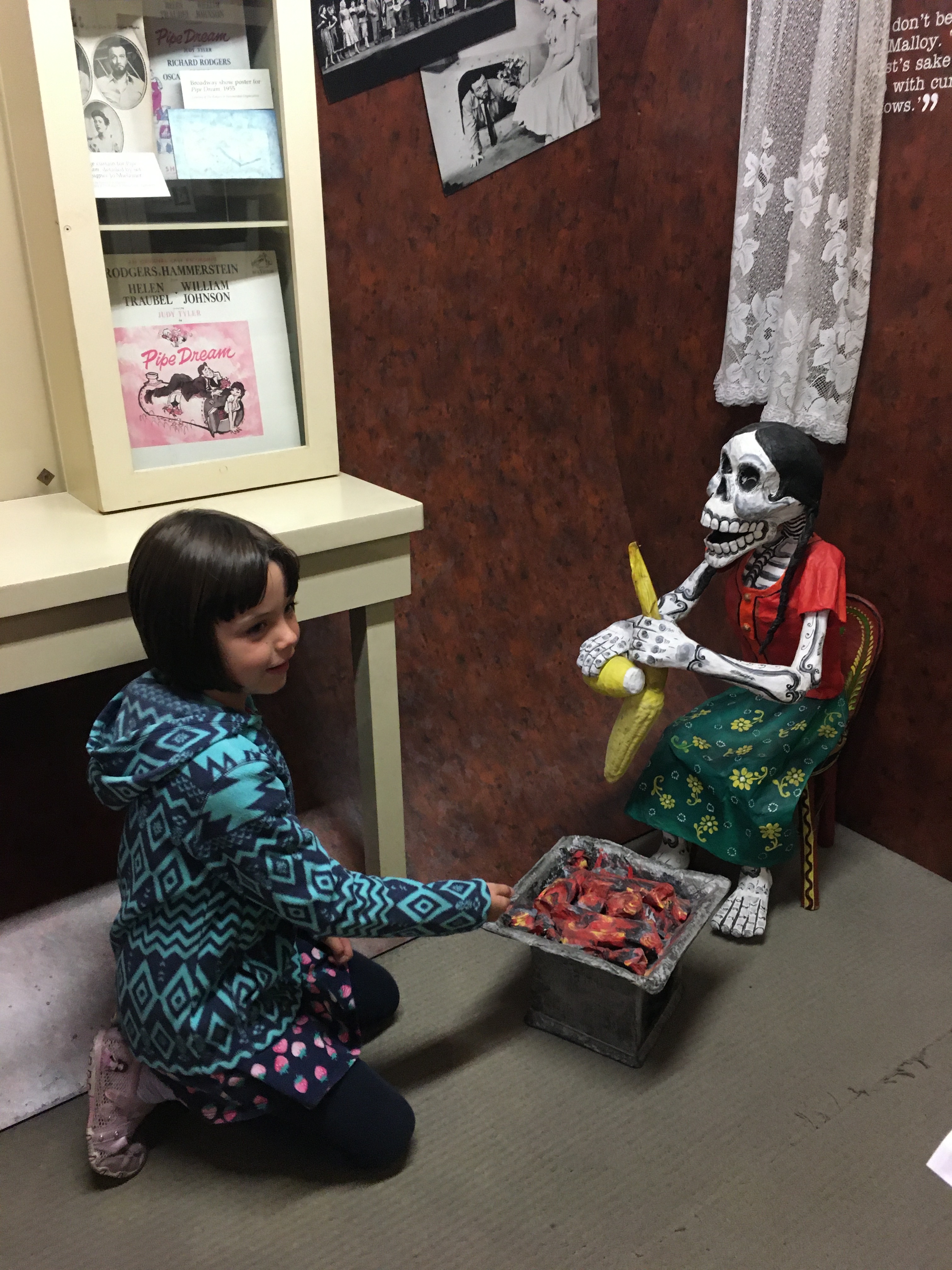 We walked through the neighborhood and finally found Mr. Steinbeck’s Museum! We got there just as they were opening, and the lady explained that in honor of Dia de Los Muertos, there was a Scavenger Hunt. We found really handsome skeletons made of paper mache all through the museum.