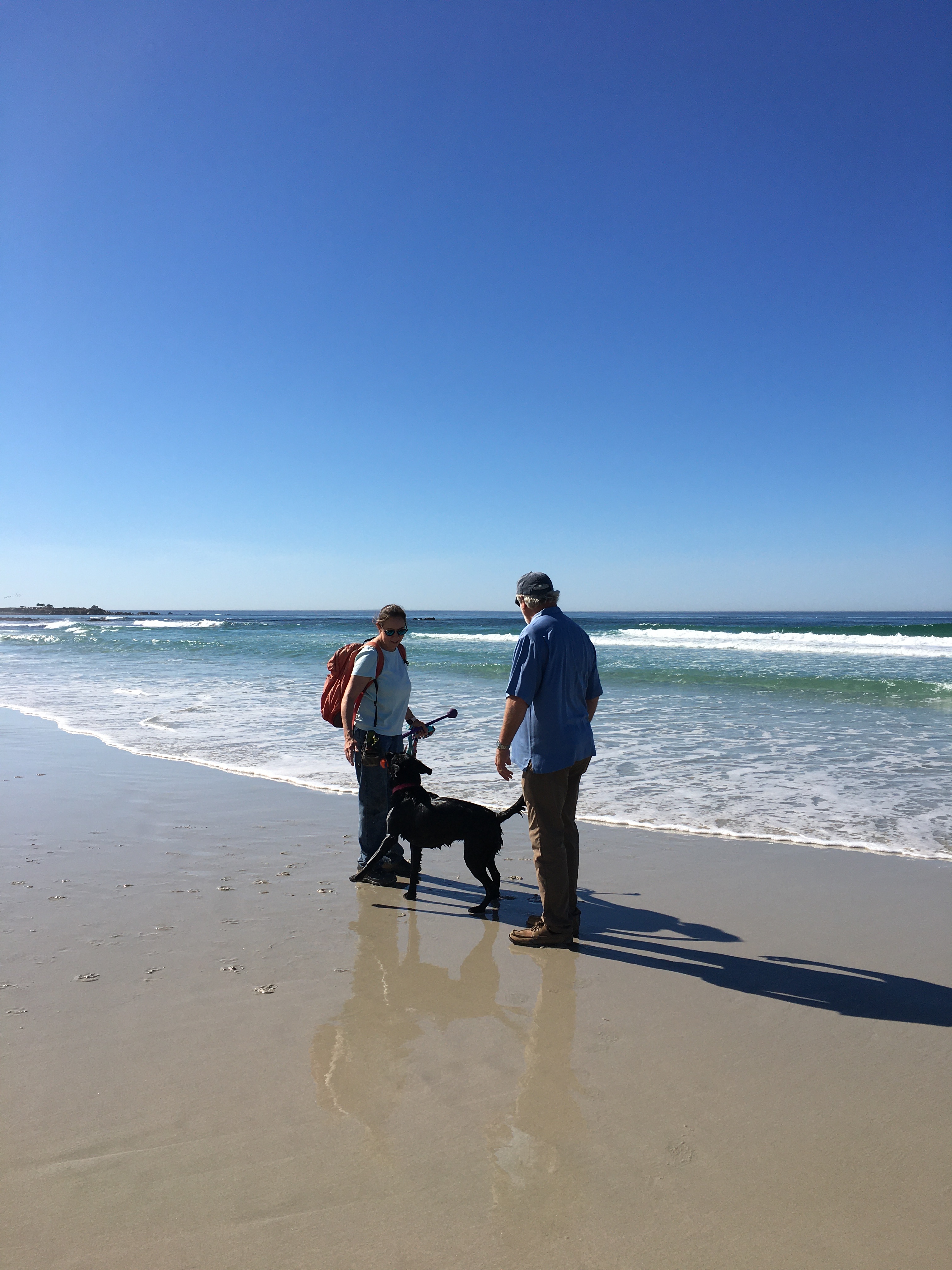 After we ate delicious food, we walked down to the beach and enjoyed the cool breeze, soft sand and really chilly Monterey Bay waters. Donald, like us, loves watching other people’s dogs.