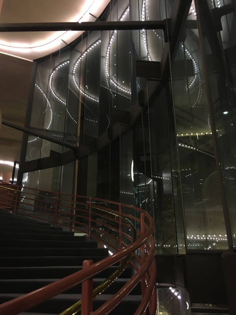 The Newmark is up a sparkling spiral staircase, and since we had balcony seats, we got to have good views. We were there to see The Hot Sardines.