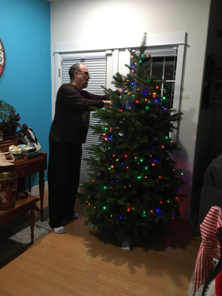 Still, I hate colds. They sap my energy, so I can’t be busy. I have trouble lifting my head, much less the Christmas tree that Grandpa Nelson and Auntie Bridgett are carrying to Sunnyside School today for recycling.