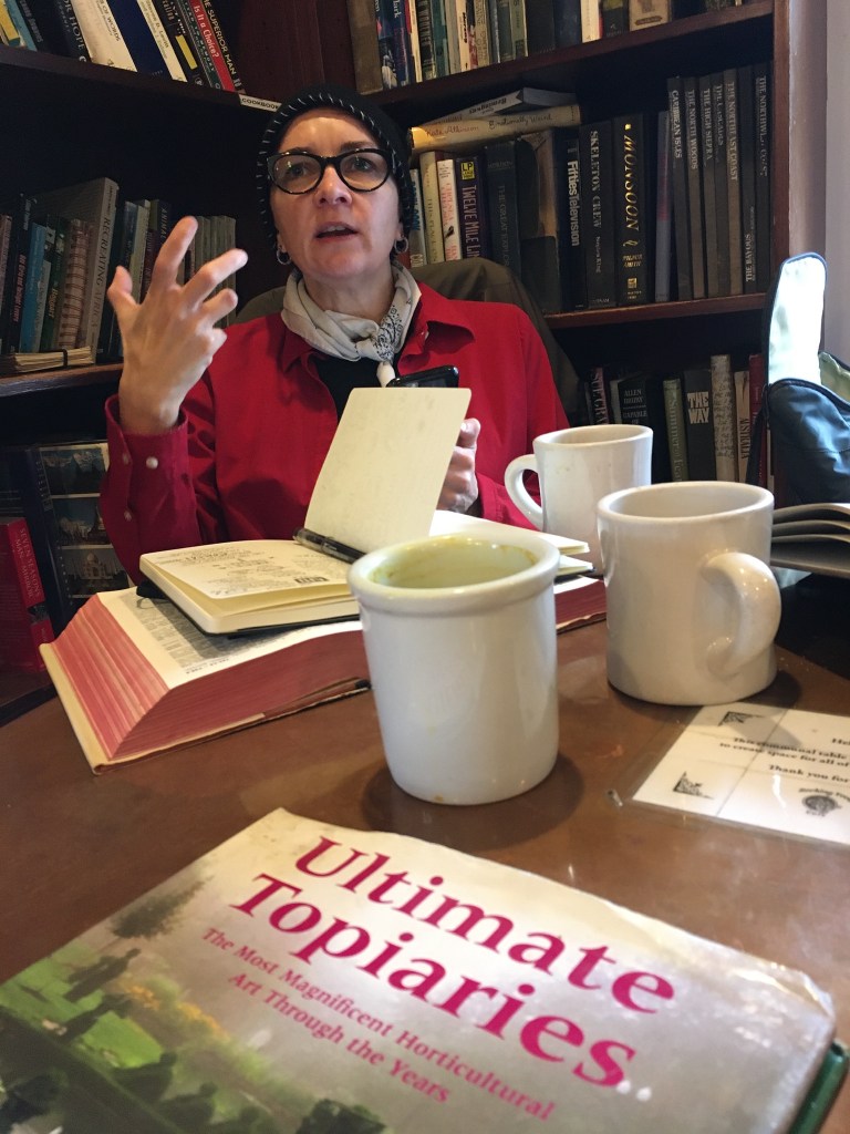 Next, I pulled up “Ultimate Topiaries”, whose pictures of sunny, and even snowy, gardens, raised my February spirits. Reading always leads to conversations and we had, and overheard, quite a few.