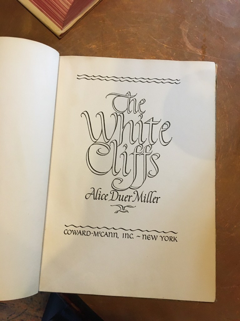 And on a wet chilly day, the warmth and conversation is irresistible. We looked at books randomly pulled from shelves. I found “ The White Cliffs”, a novel in the form of short poems. It was written by feminist author Alice Duer Miller, whose writing encouraged America’s entry into World War II.