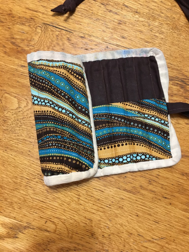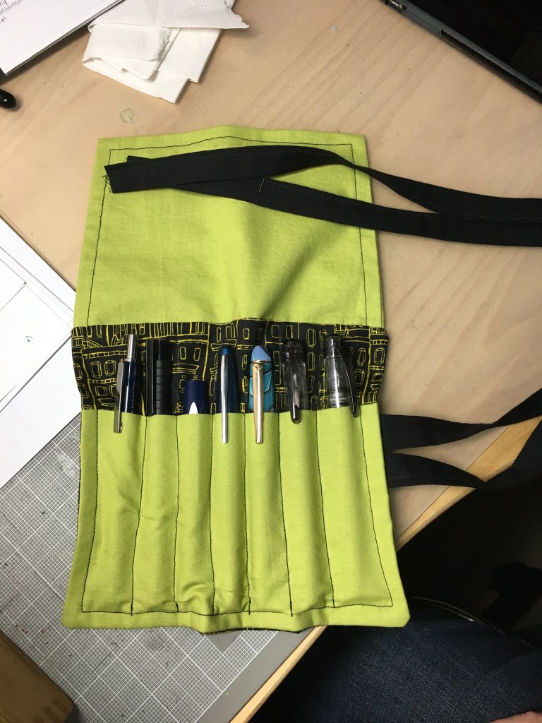 We used some of the fabrics we picked up long ago, and it worked out well. Now she has the old one for colored pencils, and the newer one for her fancy fountain pens, which she loves very much and wants to protect.