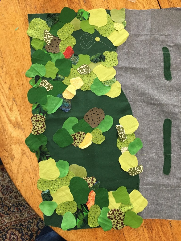 I have picked up a project I started last year, an appliqued map of Portland. Making maps is one of my favorite things, but they always require so many decisions! How much of the city should I show? How big should everything be? How much artistic license can I take?
